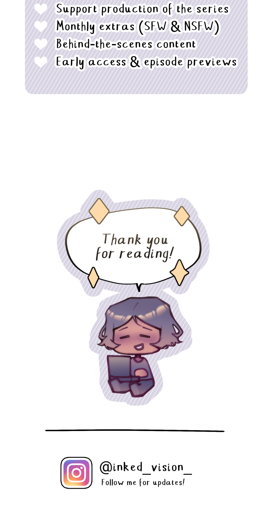 Sorry I’m bad at replying to comments, but I absolutely love reading them—they make my day! Thank you all so much! 💕 EDIT: I reposted to edit a few little things without redrawing. You may have noticed, but I experimented with 3D model lineart significantly in this chapter. The result wasn't quite what I wanted so I've adjusted my method going forward.