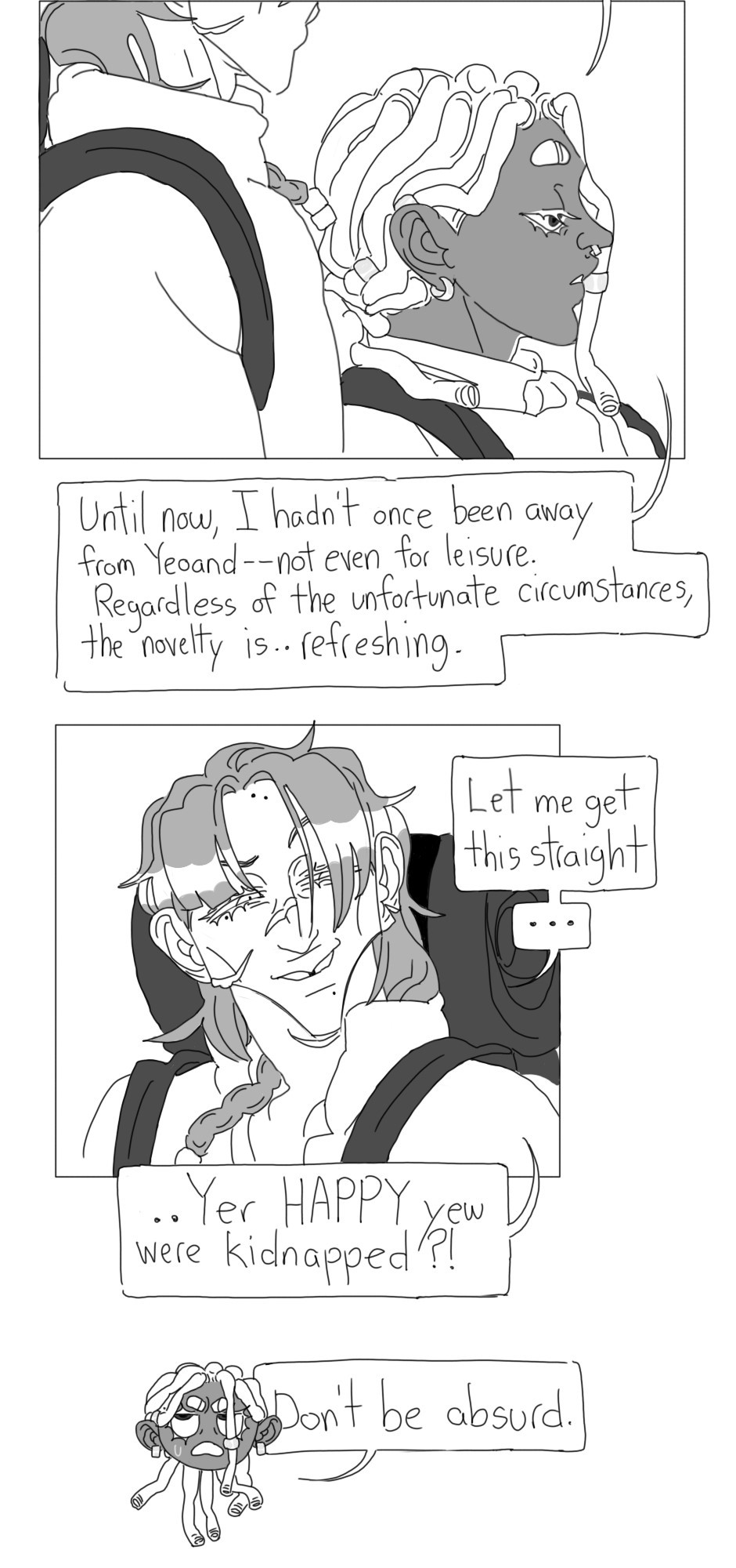 Ade Montufret, heir to the Montufret estate in the heart of the gold district, has been kidnapped. He manages to find himself beached upon unfamiliar shores all the way on the other side of the continent-- and into the care of Yotir, a wily smuggler with some unsavoury connections. Under the promise of gold, Yotir agrees to bring this living cargo back home.