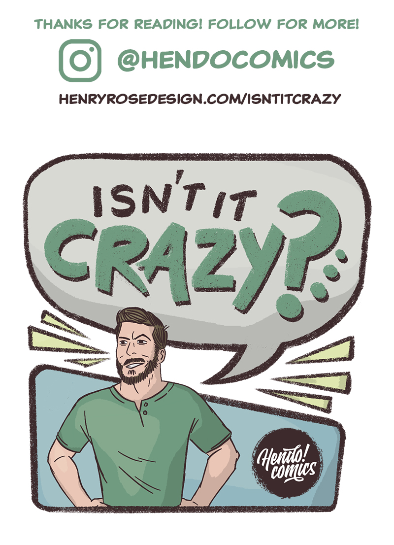 At least once per day a goofy thought pops into my head and I think aloud to myself "isn't it crazy that..." or "isn't it weird how..." - this comic allows me to get these weird thoughts out of my head and onto the page. In other words - a dumb comic about the dumb ideas that pop into my dumb head. Enjoy!