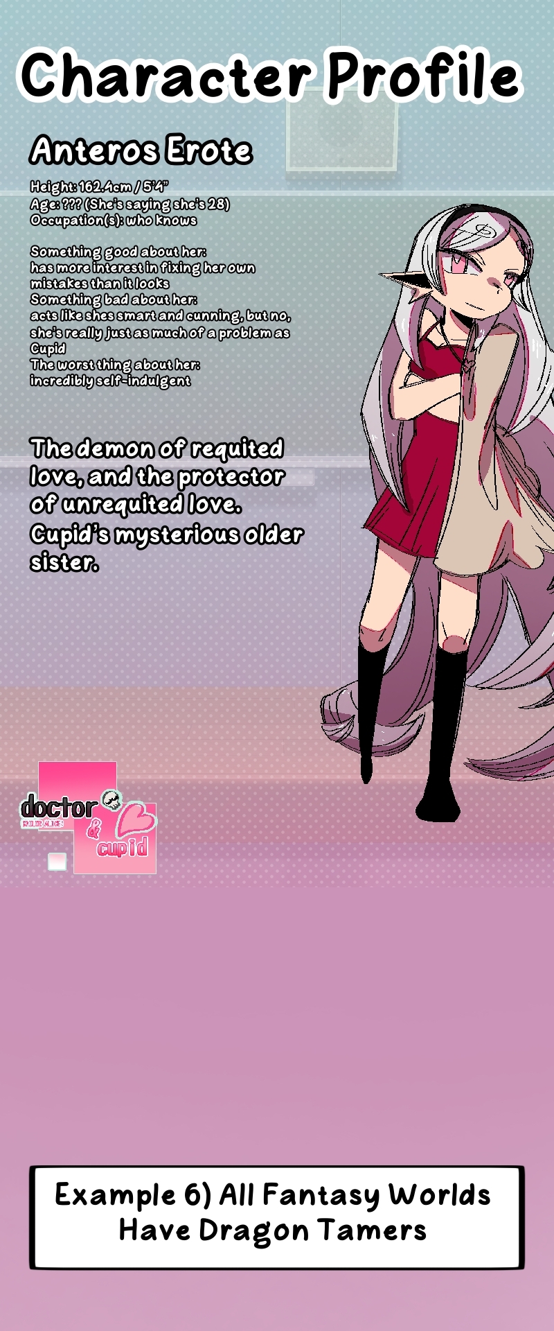 An unserious and crass fantasy comedy comic. About a delusional demon named Cupid.