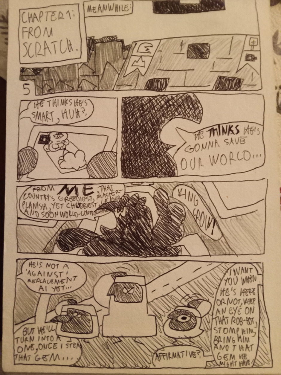 Robotic main character 1Mice is on a adventure to stop his doppelganger brother 2Cat, from dominating his home earth after a unfortunate event, that let him feel alive and this planet to become a ruin. To do this, he'll need to stop the tyranny King Crow, so he could continue curing the others from his own brother and the world change work a bit a bit.