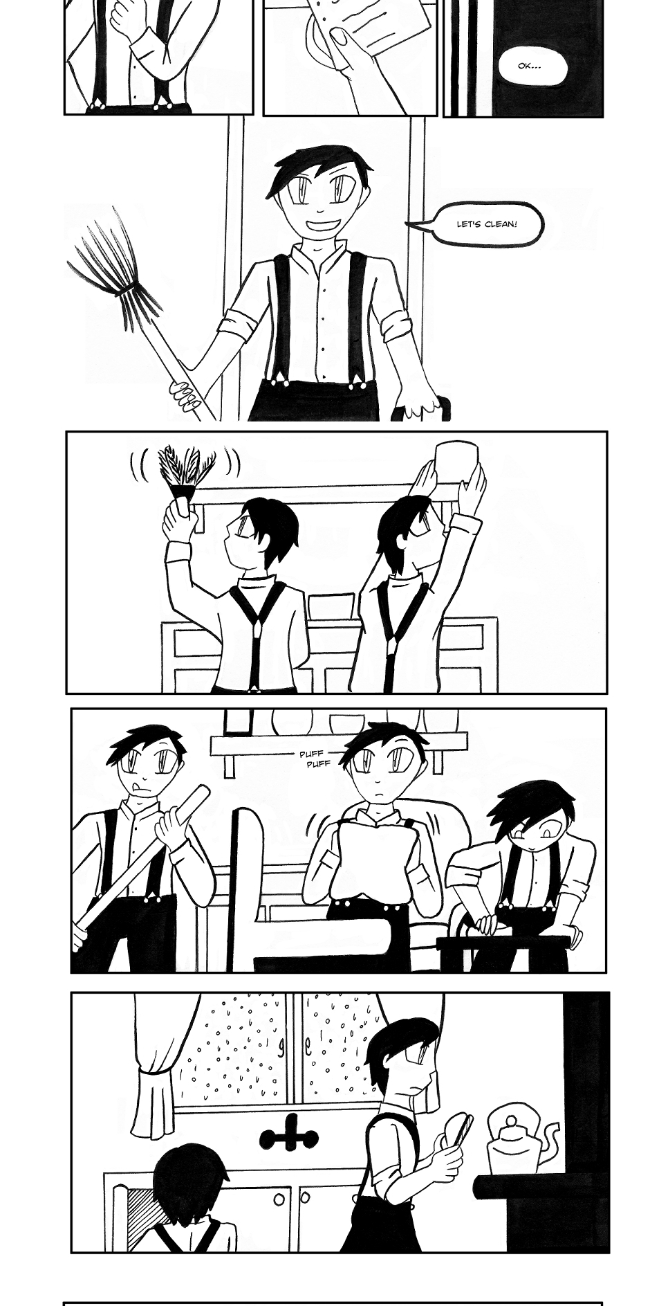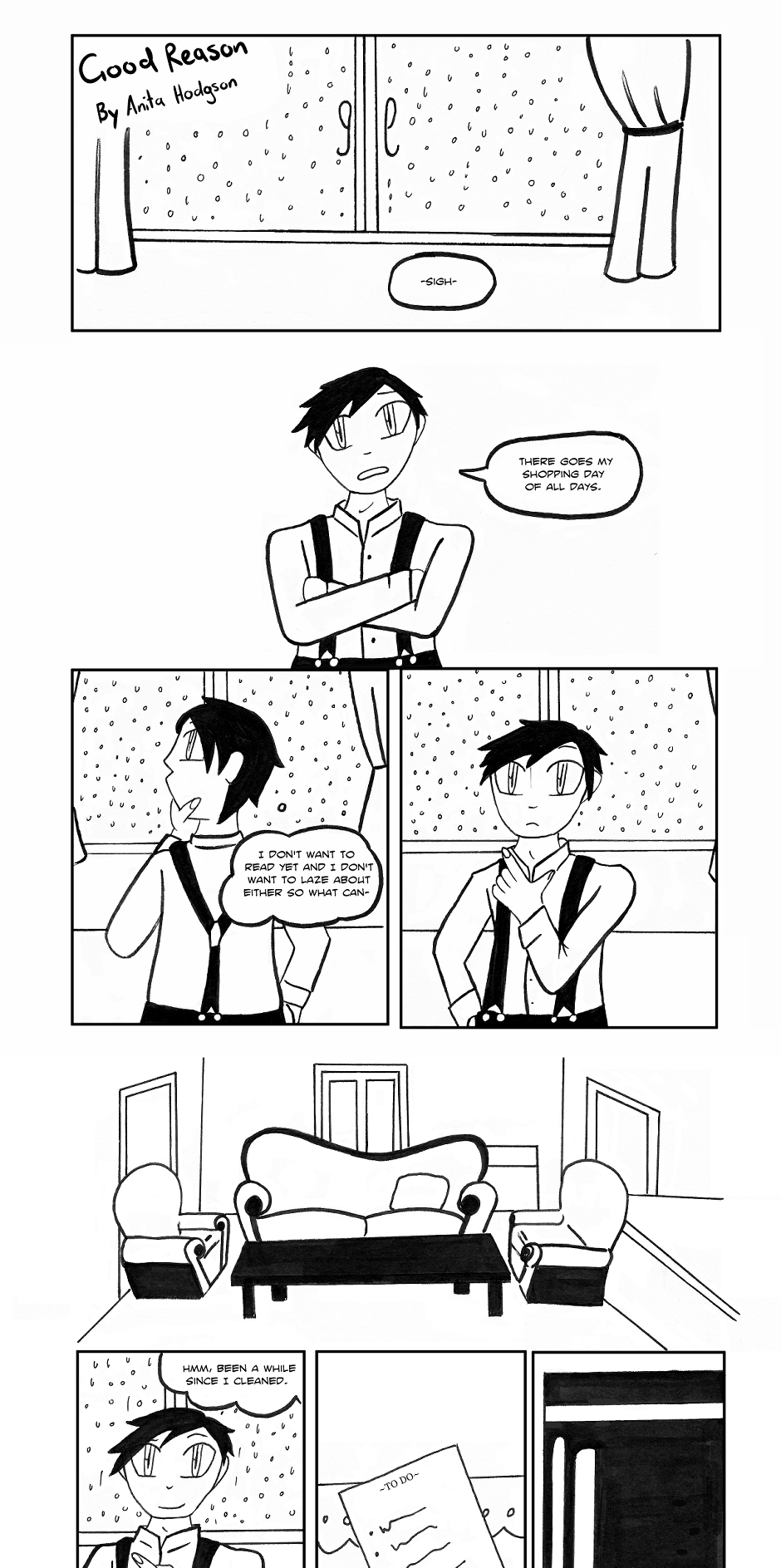 Decided to go for a side-story to a bigger series I'm currently writing, and not only did I decide to go for something calming as I knew many contributors were going to drawing exciting stories, I think people can relate to wanting to work on something when it's raining.