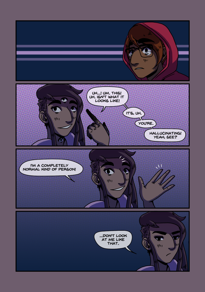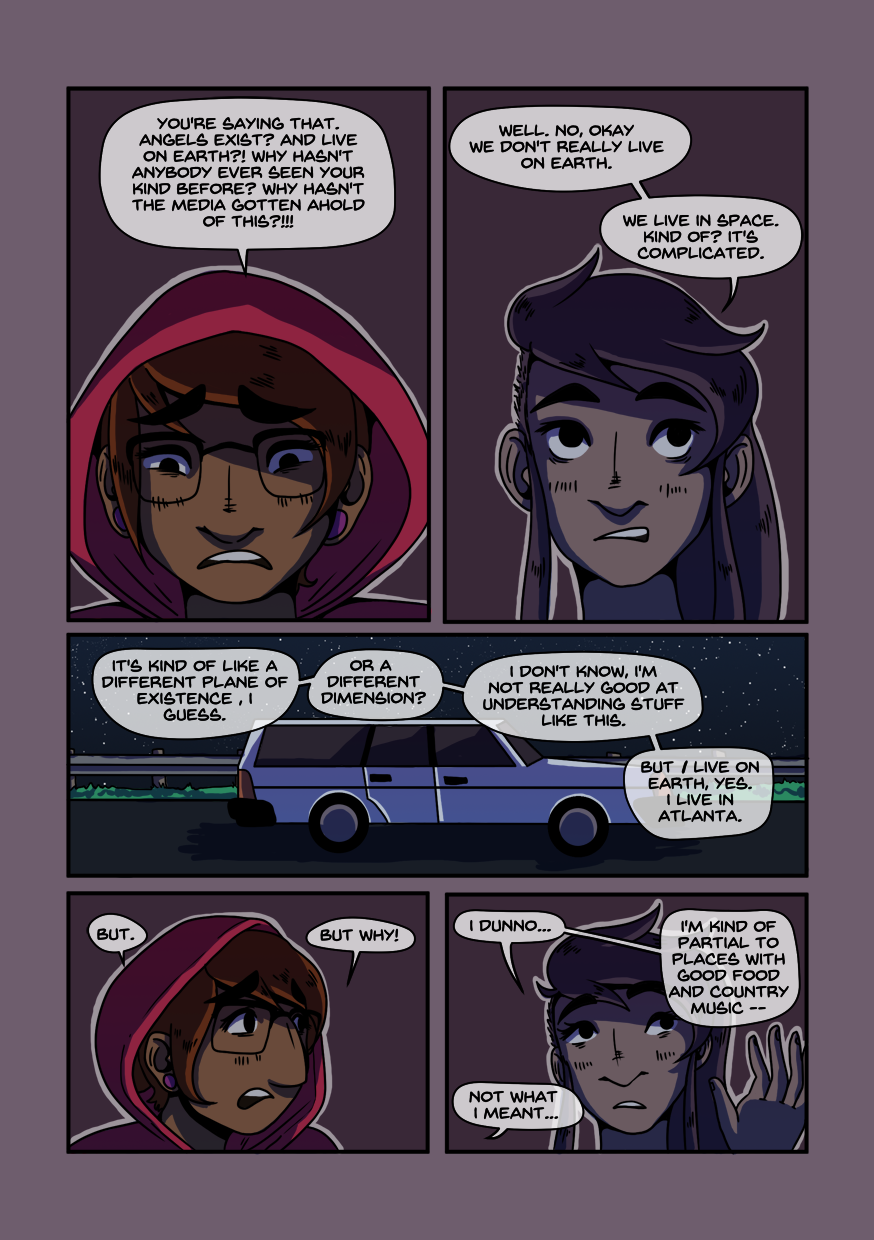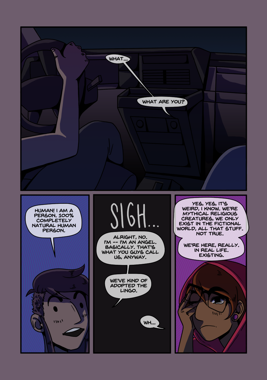 AMBROSIA is a webcomic about an angel and a human taking a road trip fueled by revenge.