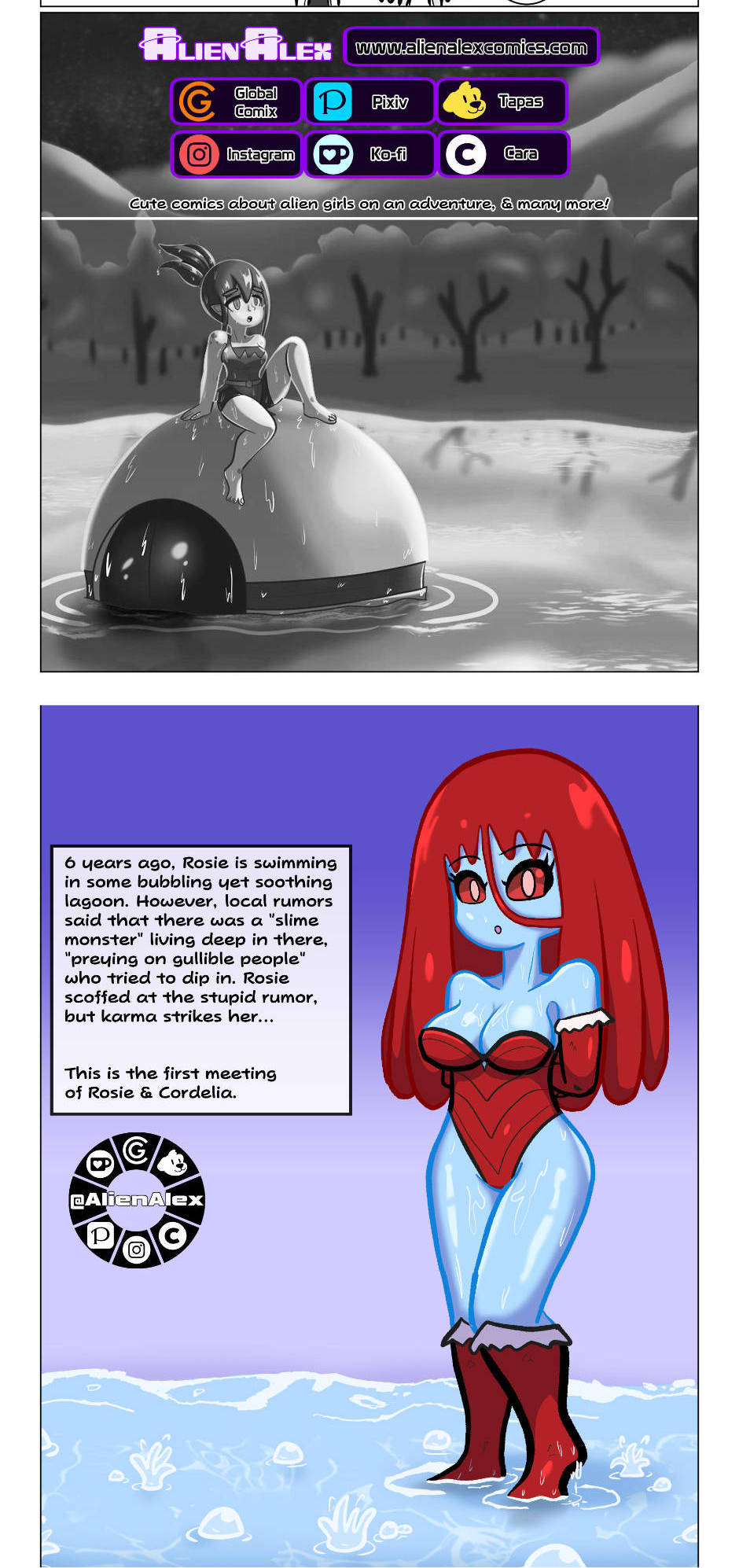 6 years ago, Rosie is swimming in some bubbling yet soothing lagoon. However, local rumors said that there was a "slime monster" living deep in there. Rosie scoffed at the stupid rumor, but karma strikes her...
