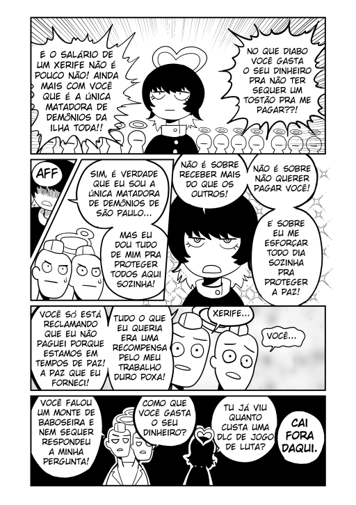 Preta Goista é um anjo que mora na ilha de São Paulo. O seu sonho é ser tornar uma xerife por isso ela virou uma matadora de demônios!