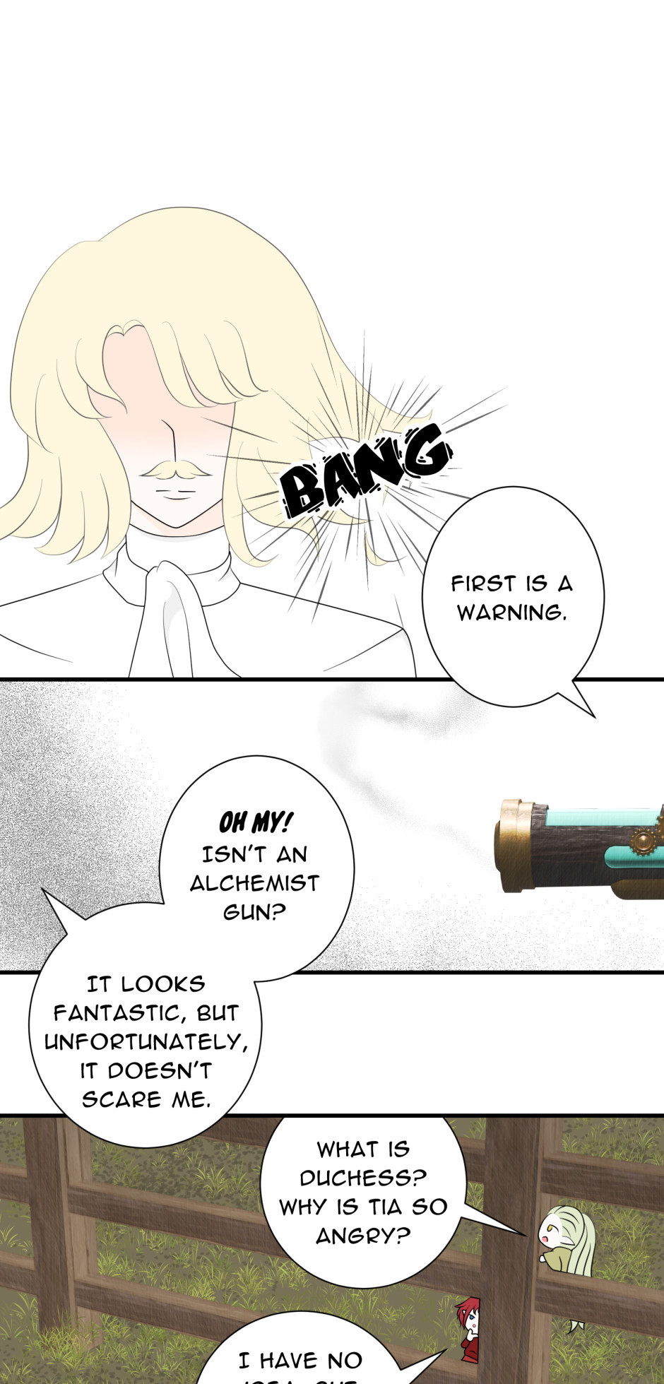 Tia is the Duchess who is believed to be dead, but she is living with two magical creatures called “Sprites”, named "Milo" and "Heith", in a small town. She expected to live quietly but fate does not seem to allow it. Alongside her new friends, she will uncover the secrets of Libertia.