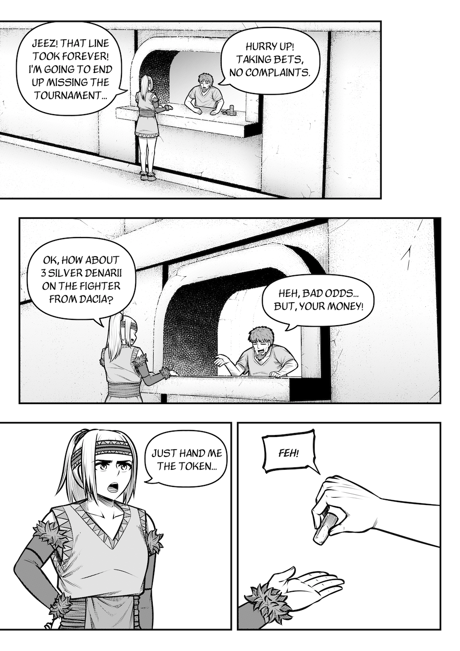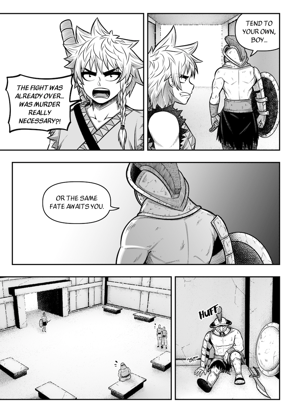 Finally, the first round of the Great Gladiatorial Tournament has begun! The first match, between Aegis, "The Chatterbox" and the mysterious, "Demon of Dragonum," Pullo, starts at the count of three..! Aegis is a lovable, yet talkative local gladiator from here in Rivenna... Pullo is a famous mercenary gladiator from Ostia's grand capital, Dragonum. Pullo is the best of the best... Does Aegis even stand a chance? Can this hometown hero defeat the capital's champion? The only way to find out is to READ!