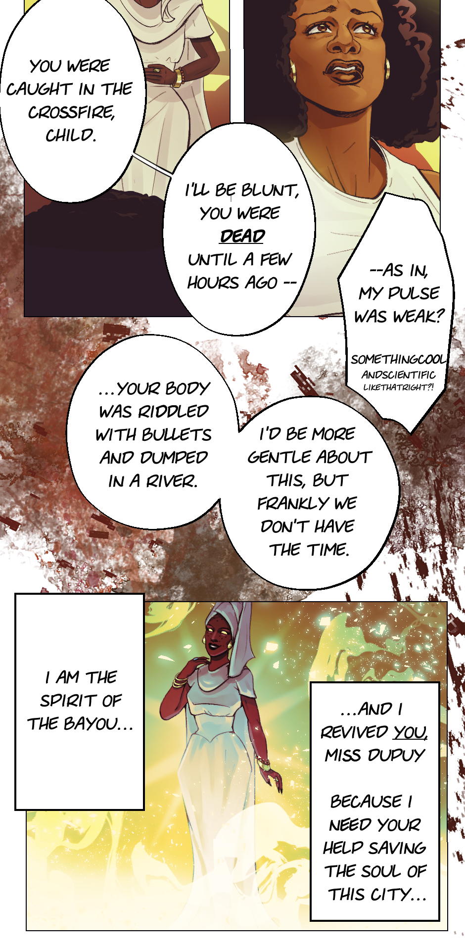 But as luck would have it, Cynthia is carried by the gators to the house of Ayla, a Bayou spirit.