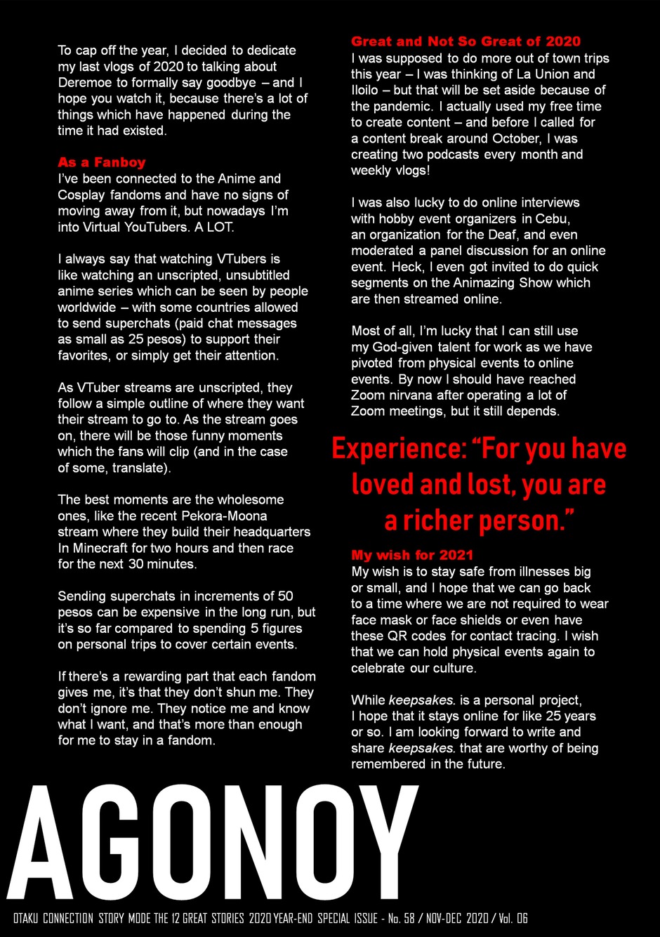 Discover the connection with our collection of amazing and inspiring stories of creative people from different parts of the world! Sharing their crafts, talents and awesomeness making their respective communities and their fandoms grow more for generations to come.