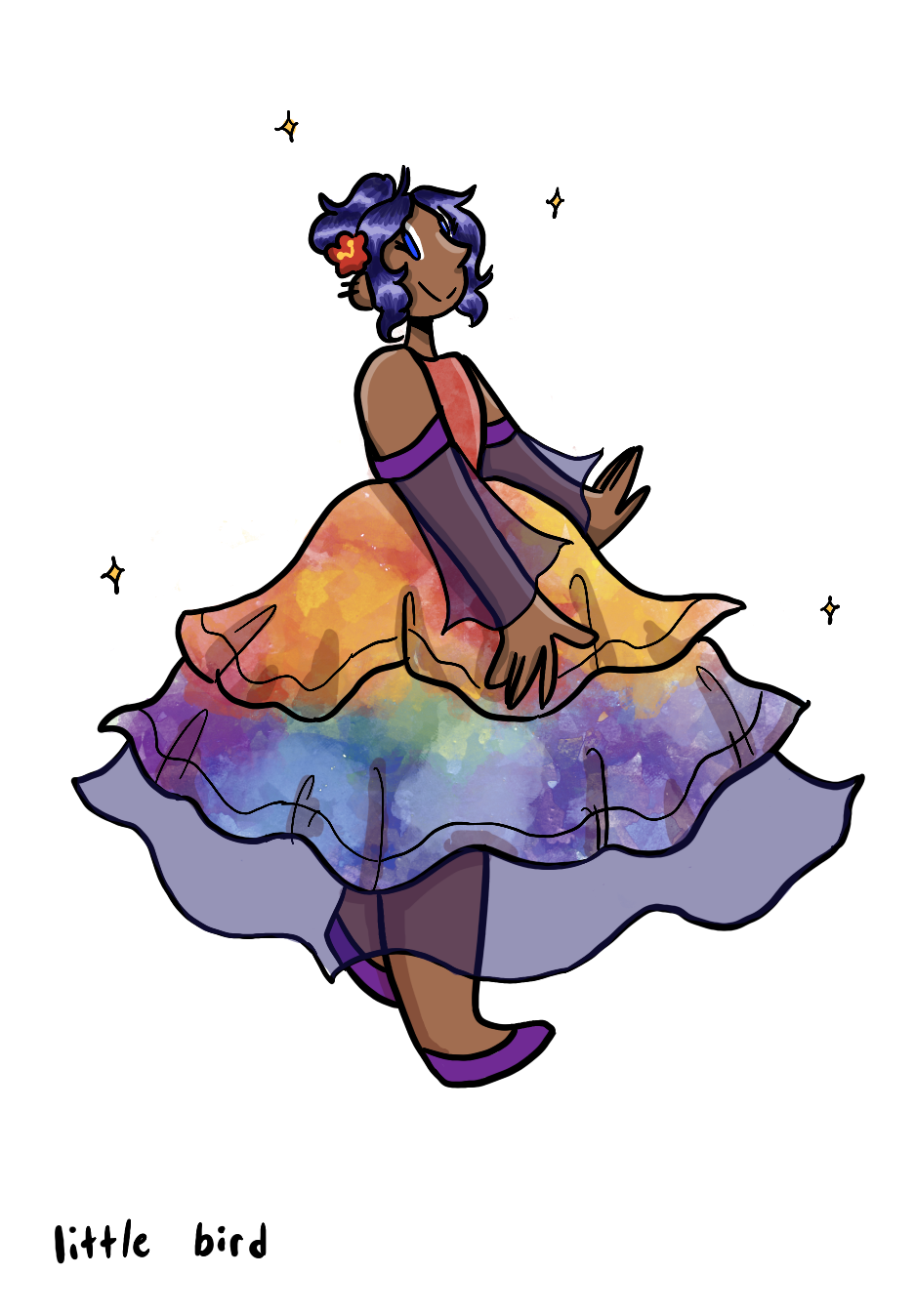 This is a drawing of Indigo that I made for @Maya with an Y! They were supposed to be wearing a prom dress, came out looking a little more like a quinceañera dress but still cool.