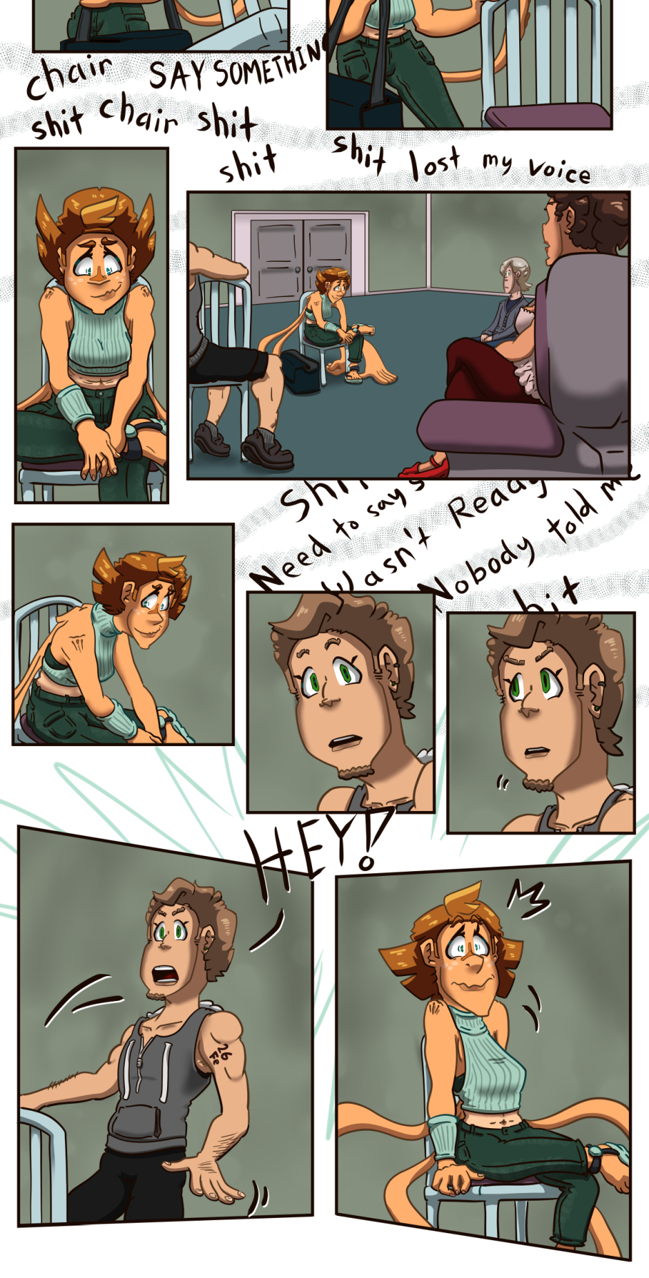 Suzanne is... panicky. It's funny cus' she's not that bad at socializing when she's calm but it all goes to hell pretty quick when she's stressed.