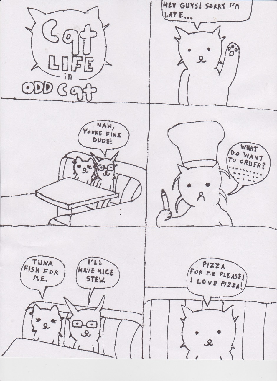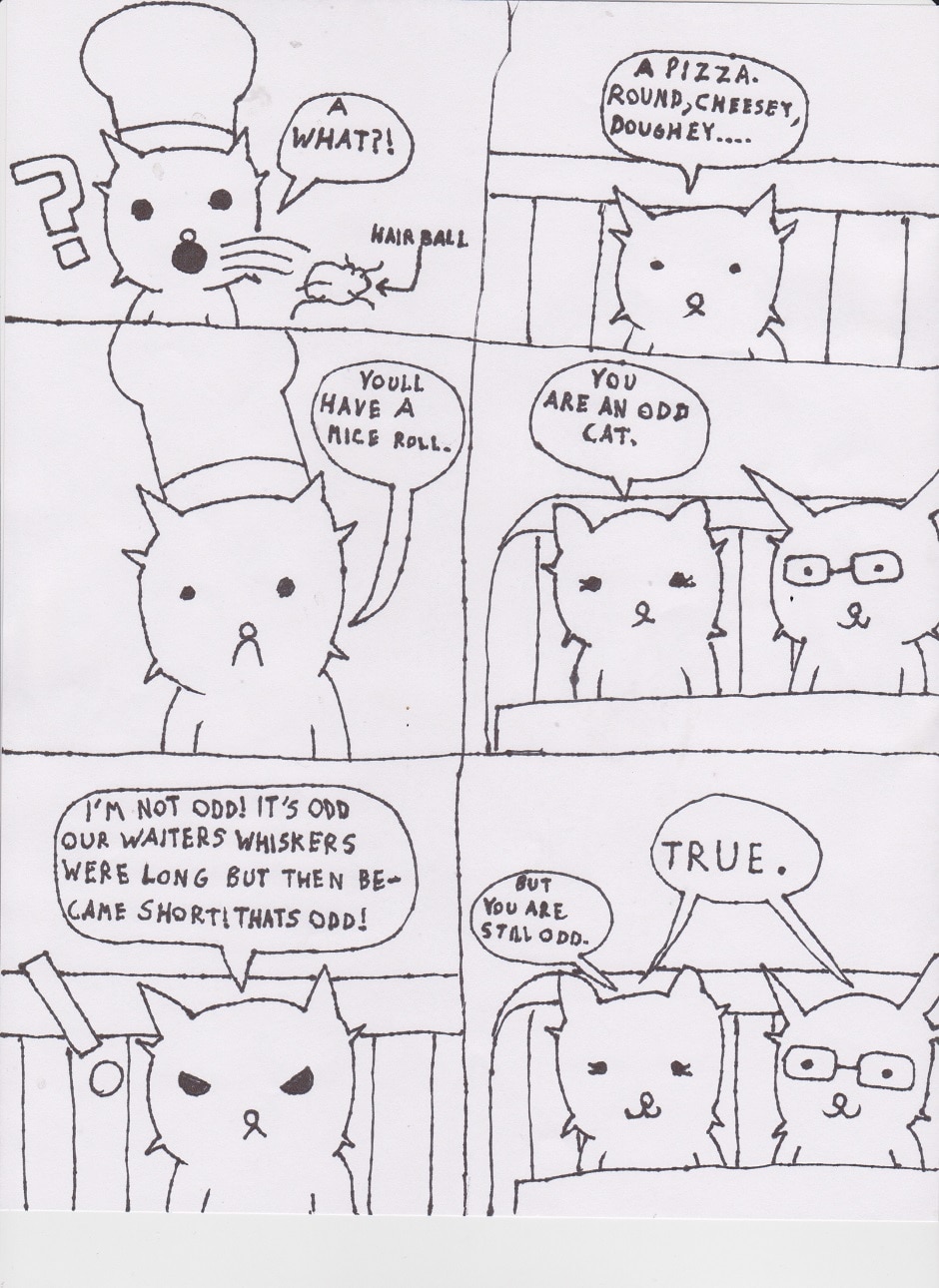 When the cats go out for dinner, things go a little odd. Mostly with pizza.