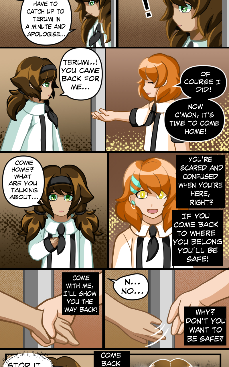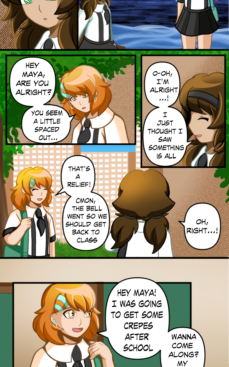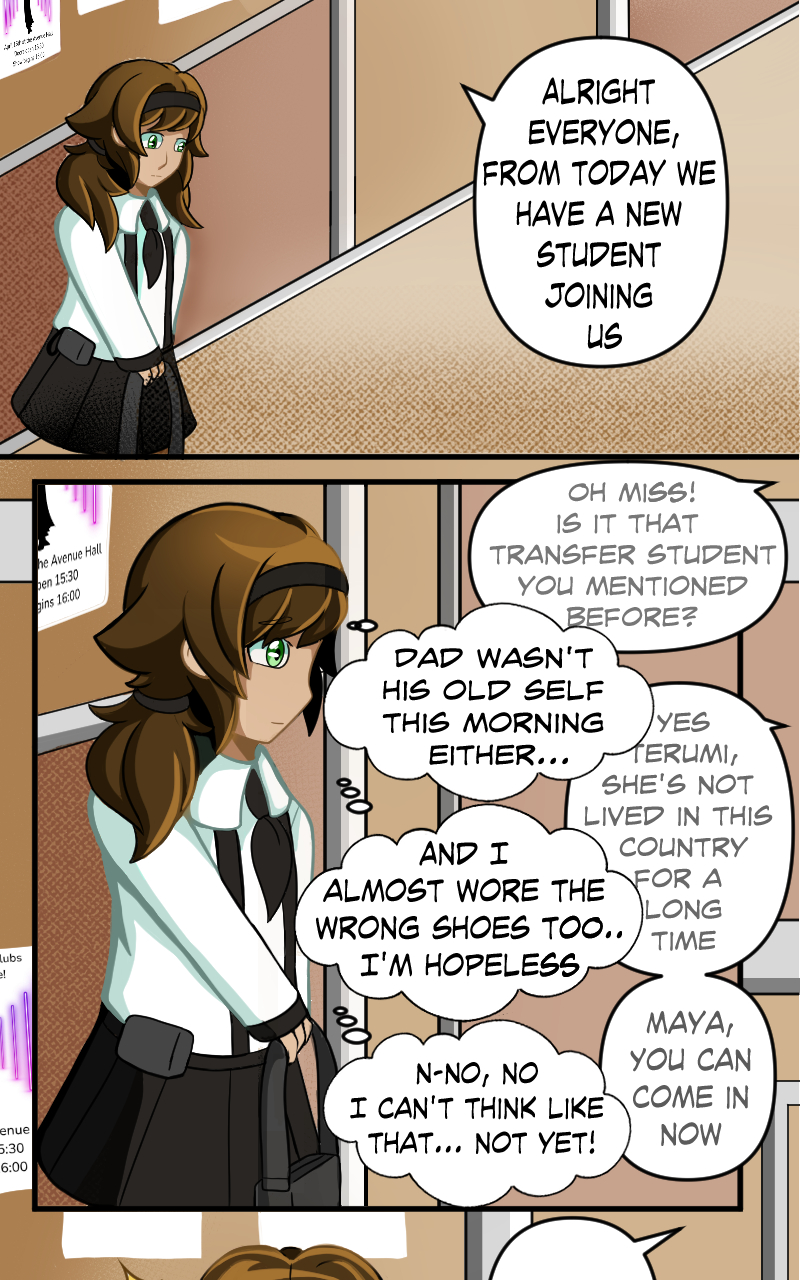 "On the same day that Emi was dragged into her ideal world, a new student named Maya begins her first day at a new school. Her new friend Terumi helps her throughout the day; but just as the school day ends she encounters someone who looks like Terumi, yet is someone different entirely…”