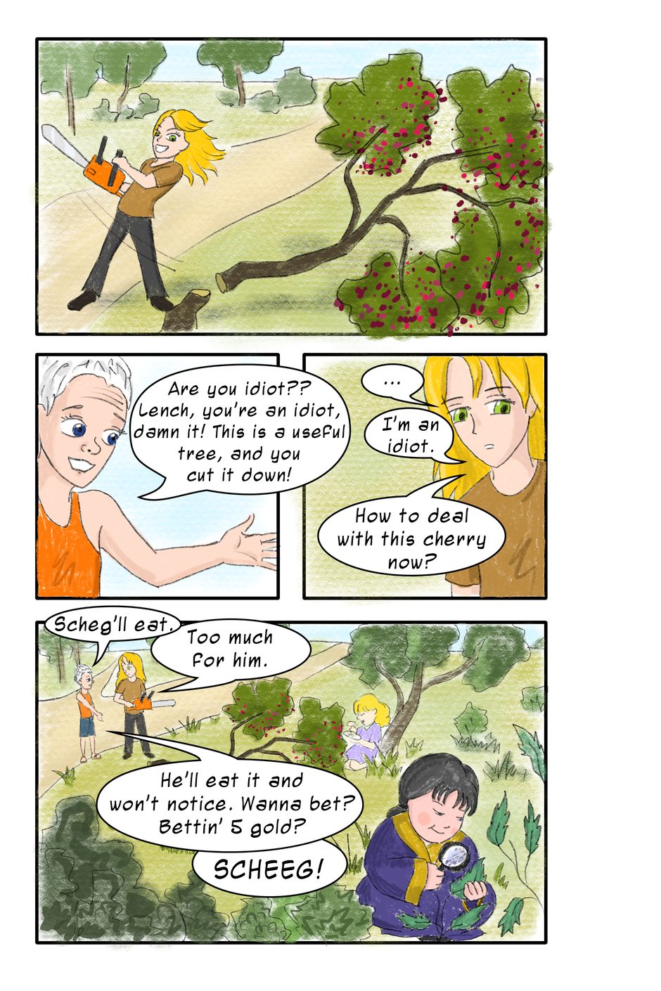 Oops! Lench chopped down a tree. Tamuck turned it into a bet. Scheg turned it into lunch. Meanwhile, the most reasonable voice?..