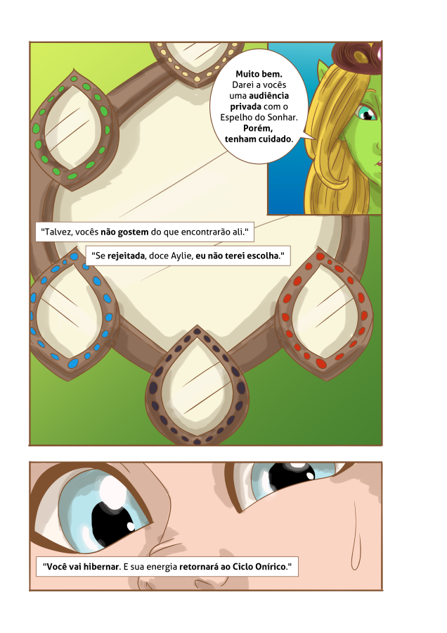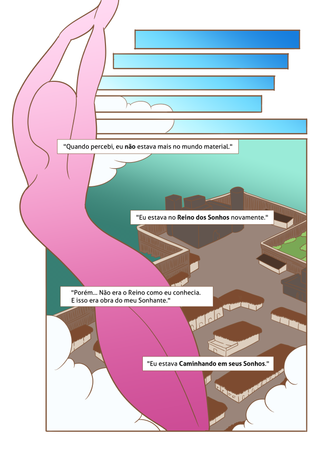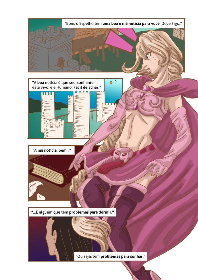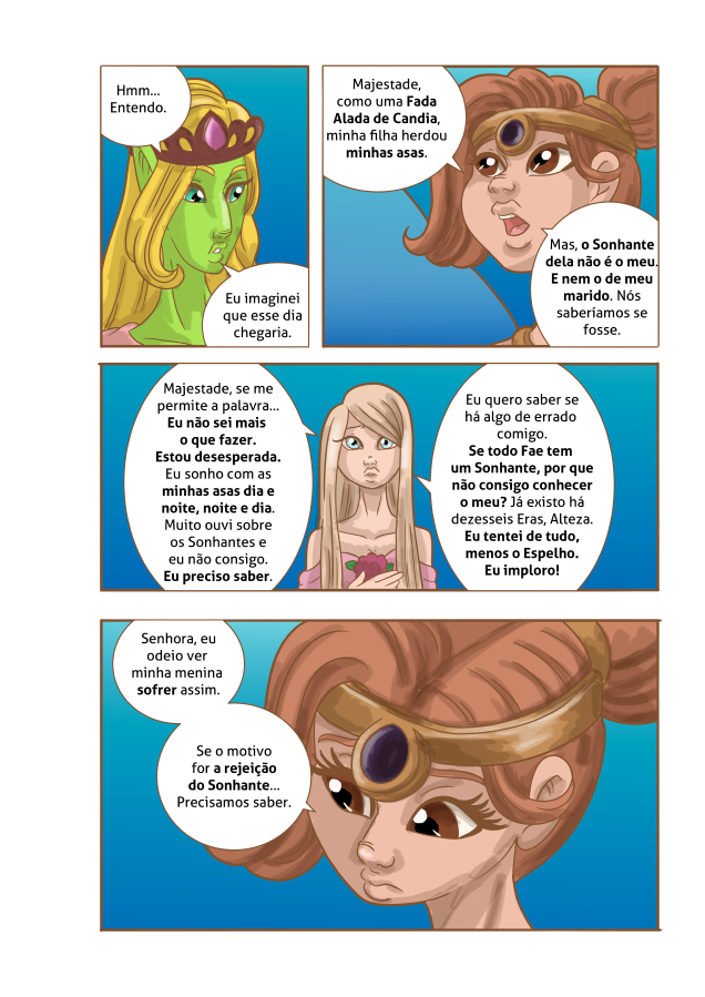 Desolada, decidiu abandonar seu lar e foi para terras humanas, em busca de ajuda, para que, de alguma forma, pudesse ter as asas com as quais sempre sonhou…