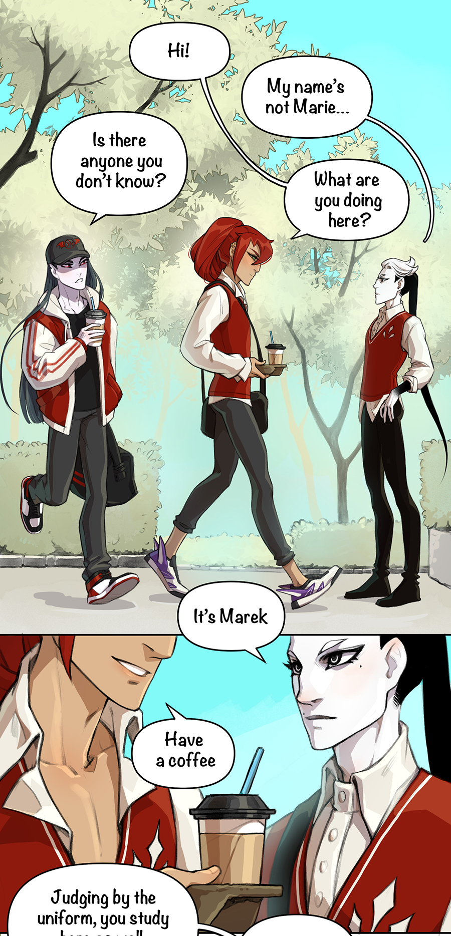 NO WAY is a web comic, a story about fantasy world and Academy, where many creatures study together. But first and foremost this is a story about a vampire and an elf who were betrothed to each other and who now have to live and learn together. Yes, this is a story about the relationship between two guys, basically, although the other characters are there too. Also in the future in the comic are planned explicit scenes of a sexual nature, so there is a limit 18 + But, basically, it's still a romantic Comedy and fairy tale.