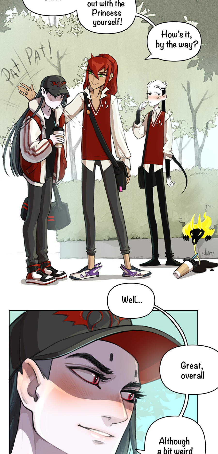 A story about an arranged dynastic engagement of an elf and a vampire, which has no plot and often does not make much sense, so be prepared for this sort of rubbish :) These short and long strips are full of queer and straight love, romance, unicorns and fairytale (lack of) logic in characters’ motivation and the story as a whole.