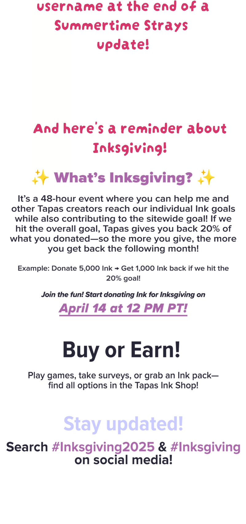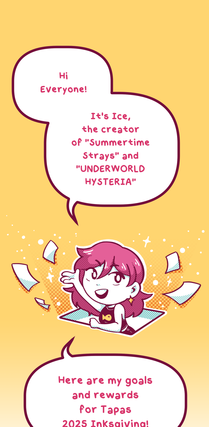 Hey guys!! So excited to annouce my goals and rewards for this year's inksgiving! I'm not sure what's to expect coming in with a fresh series and one that's been dead for 3 years! I'll be grateful for everyone who donates and support me, regardless whether or not any goals are hit. Any goal we don't hit will still happen in the future! Hitting them now will just mean they're guranteed >:D!