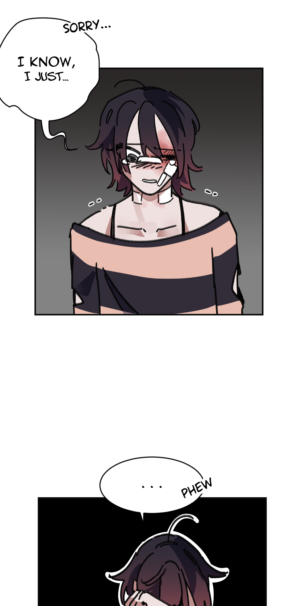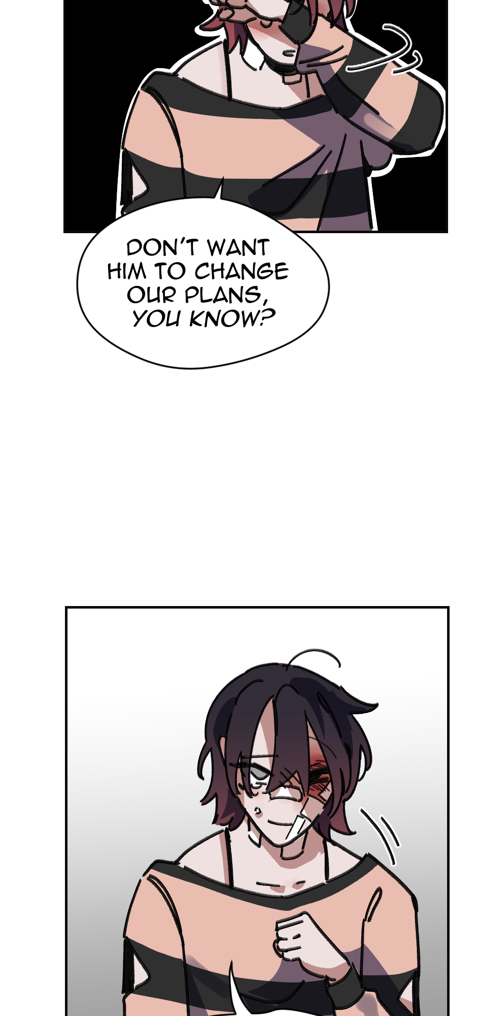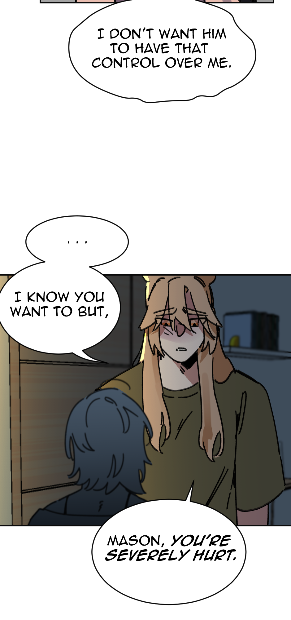 Ik ya'll aint here for me, But this is an important scene and I don't think I did it justice. I struggled with the facial expressions and really getting the emotion I wanted. Theo isn't angry at Mason more so frustrated and hurt. And Mason is just trying to play off his hurt with dark humor about his face. It is frustrating as an artist when my skills hurt the work itself.