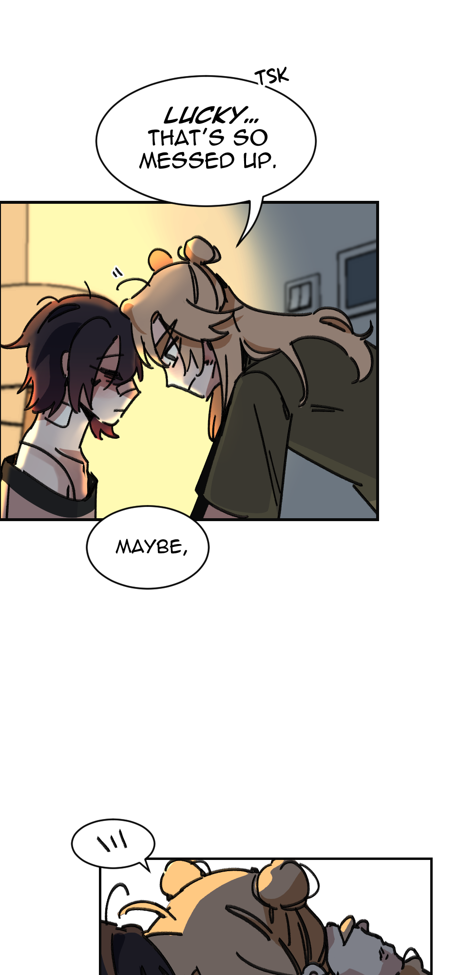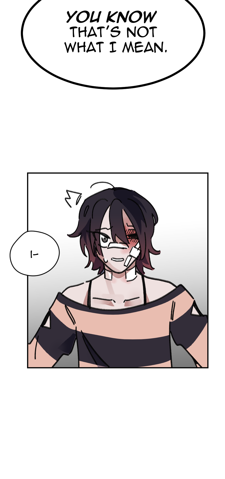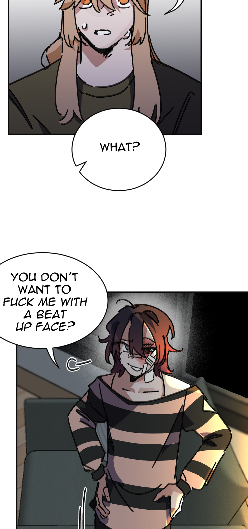 Ik ya'll aint here for me, But this is an important scene and I don't think I did it justice. I struggled with the facial expressions and really getting the emotion I wanted. Theo isn't angry at Mason more so frustrated and hurt. And Mason is just trying to play off his hurt with dark humor about his face. It is frustrating as an artist when my skills hurt the work itself.