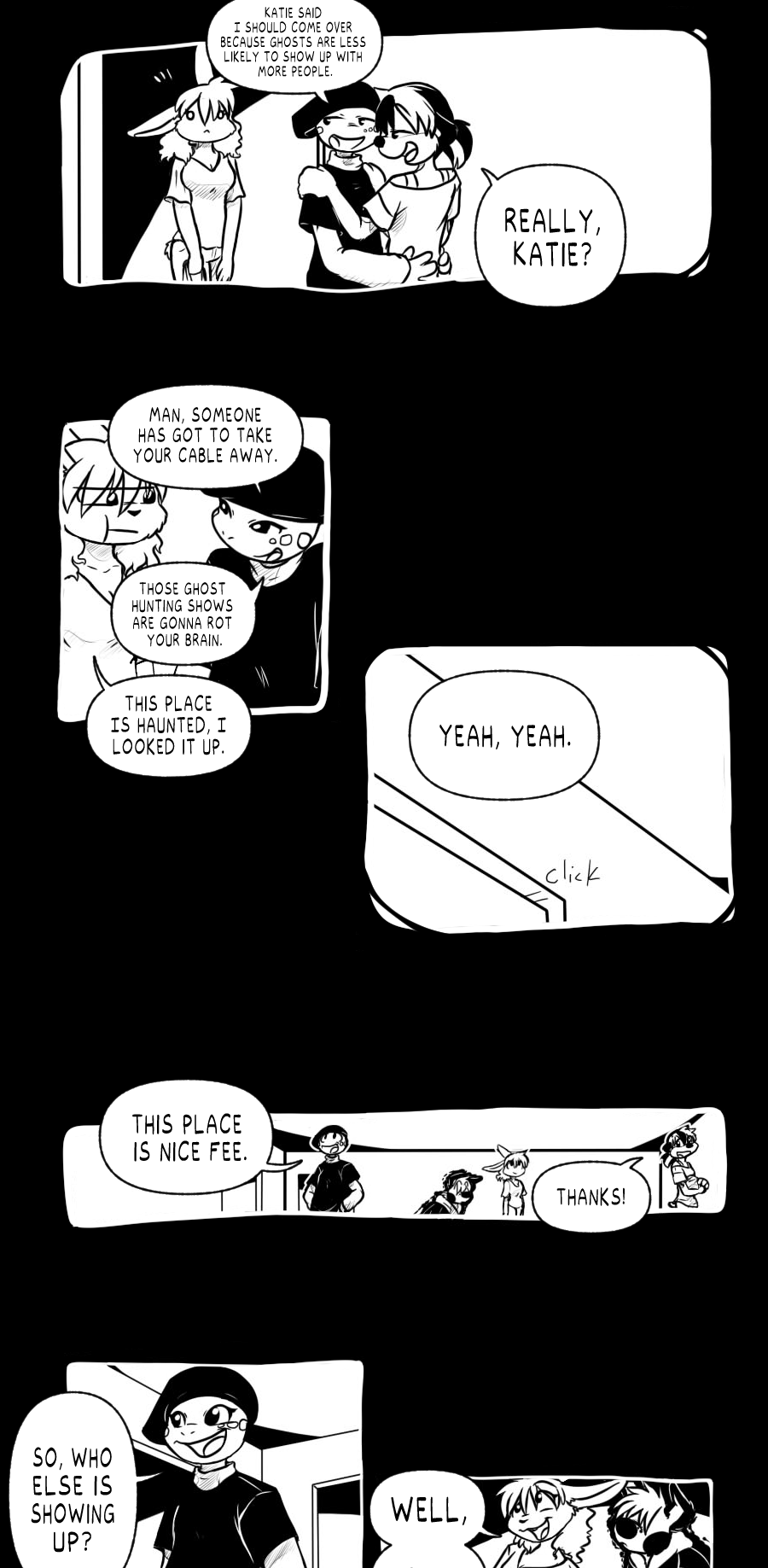 Laura: Katie said I should come over because ghosts are less likely to show up with more people.