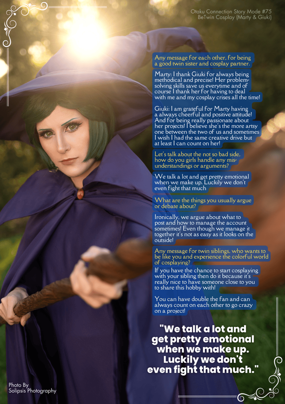 The Italian cosplayers Marty and Giuki showcase their amazing works and share with us their story of what makes cosplay more fun with your twin sister.