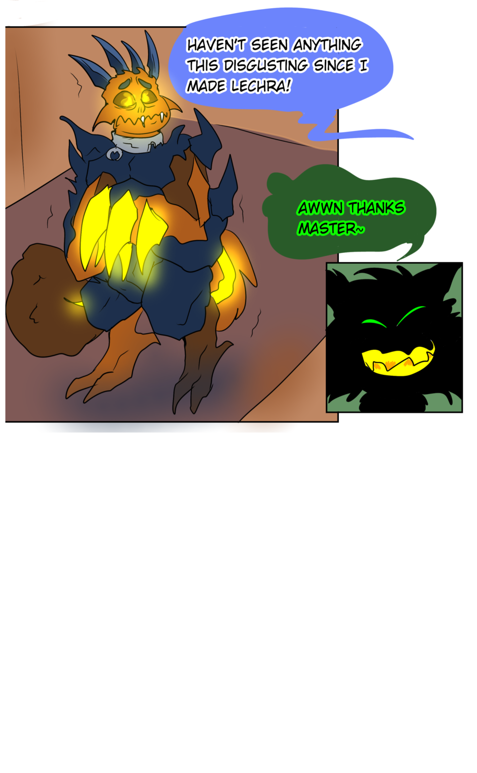 The High Demon dislikes immensely what he has created, even though it's his own fault for it to exist in the first place