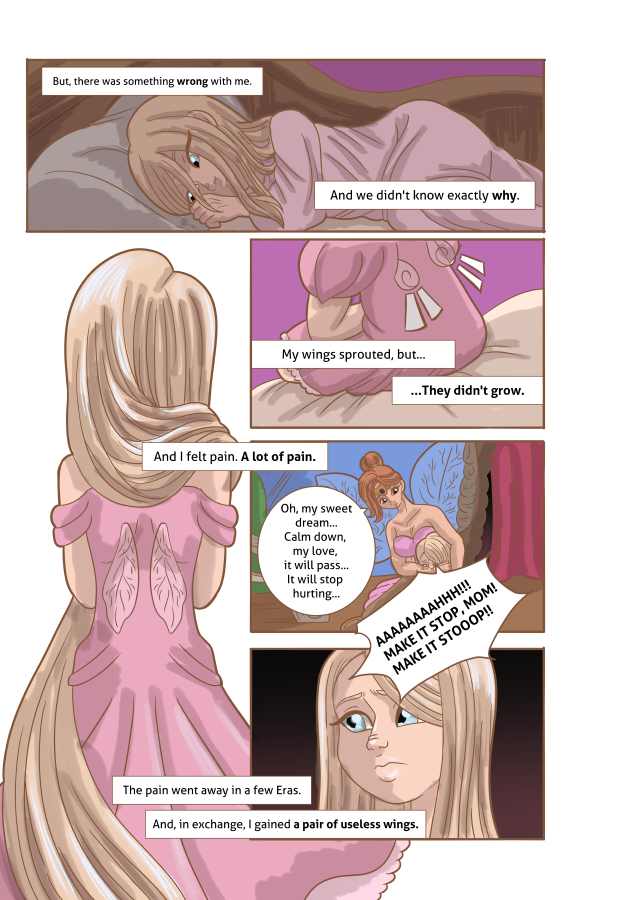 Desolate, she decided to abandon her home and went to human lands, in search of help, so that, somehow, she could have the wings she always dreamed of…