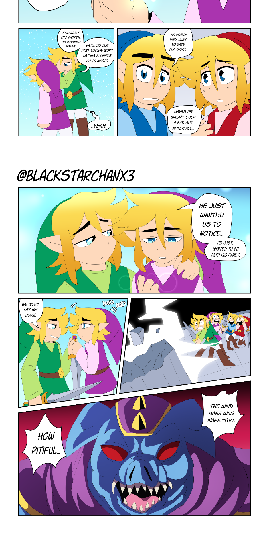 A fan made sequel comic to Akira Himikawa's Four Swords manga, originally posted to tumblr. inspired by the Legend of Zelda series.