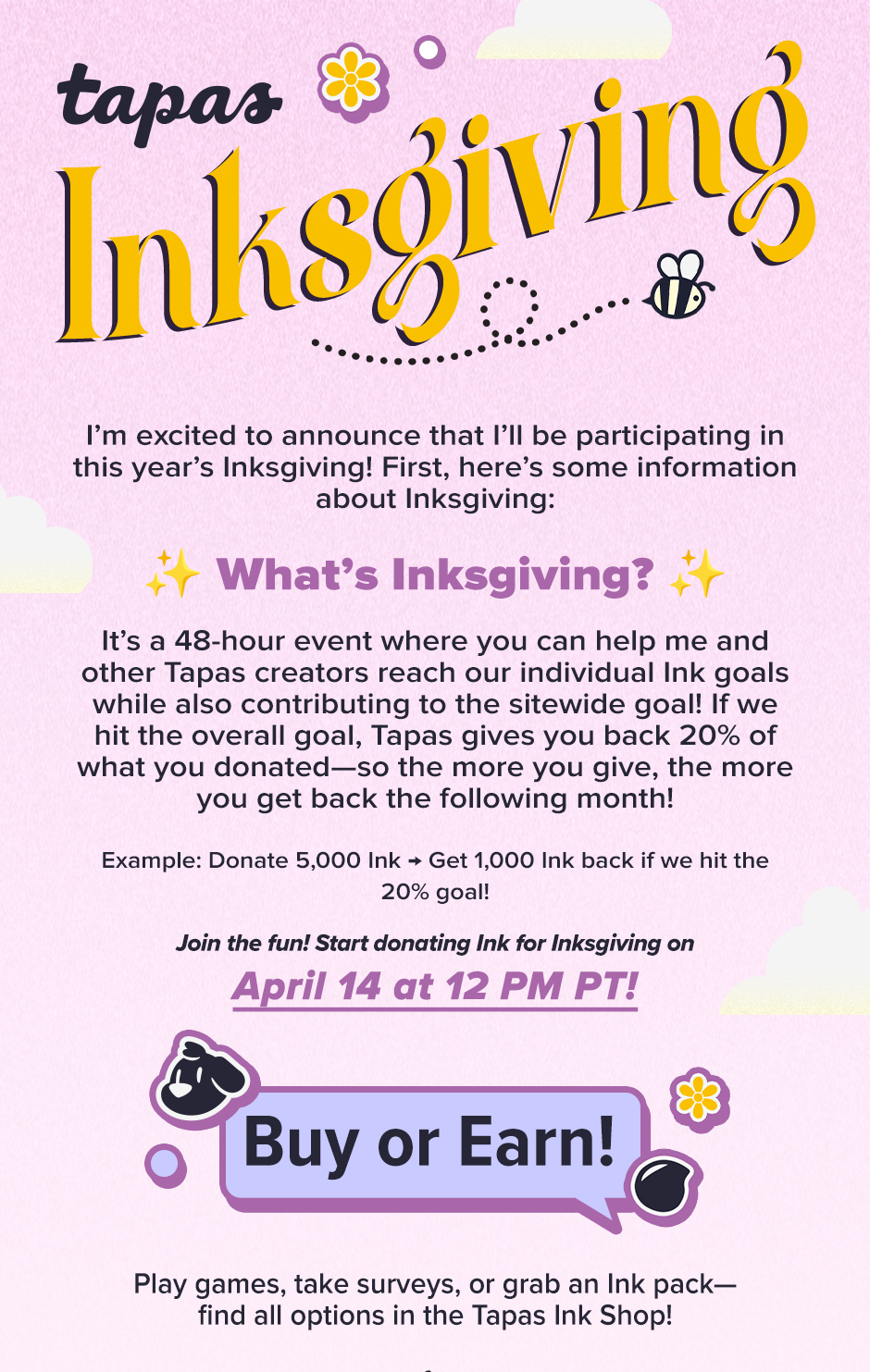 Hey Guys! Inksgiving is here and I will also take part in it on both ends (giving and hopefully receiving xDDD) I played a few games over the year and collected some Ink for you, which I will donate on Inksgiving <3 Let us reach the goals together. Love Carikku