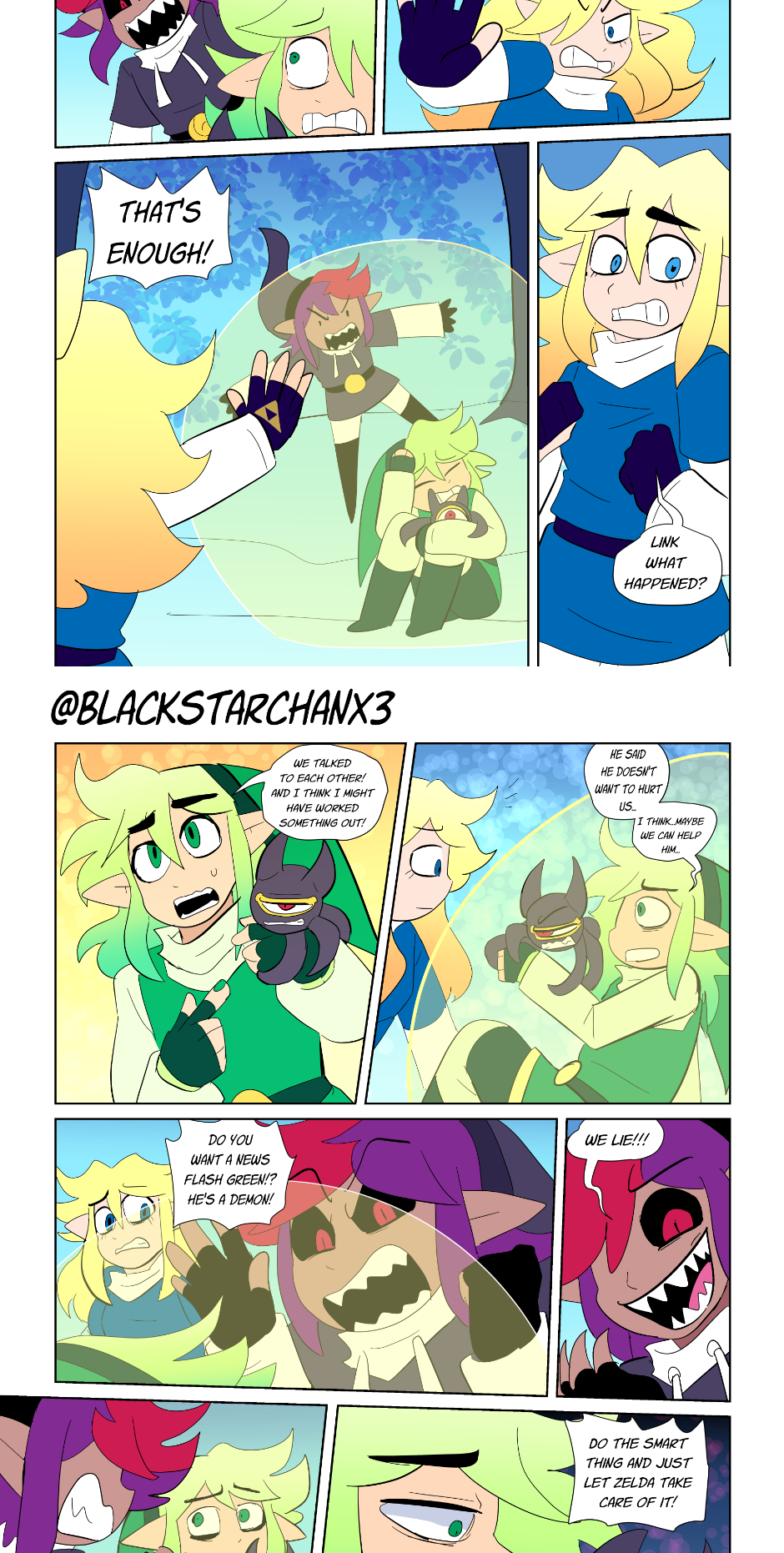 A fan made sequel comic to Akira Himikawa's Four Swords manga, originally posted to tumblr. inspired by the Legend of Zelda series.