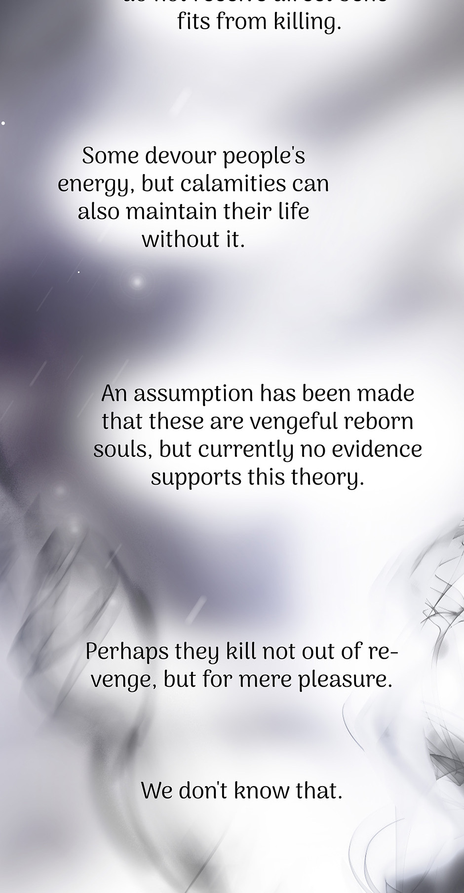 On the borders of the Empire soul cultivators find an exhausted man shrouded in darkness. Shii, the only one practicing forbidden arts, aids a stranger and has to choose between solving a political strife, monsters threatening people and the life of a mysterious man about to get executed for abnormal powers. Does his secret hide something important? The tragedy of one person will be a salvation for the rest. Only Shii is to discover what has never existed to open up his eyes to the reality.