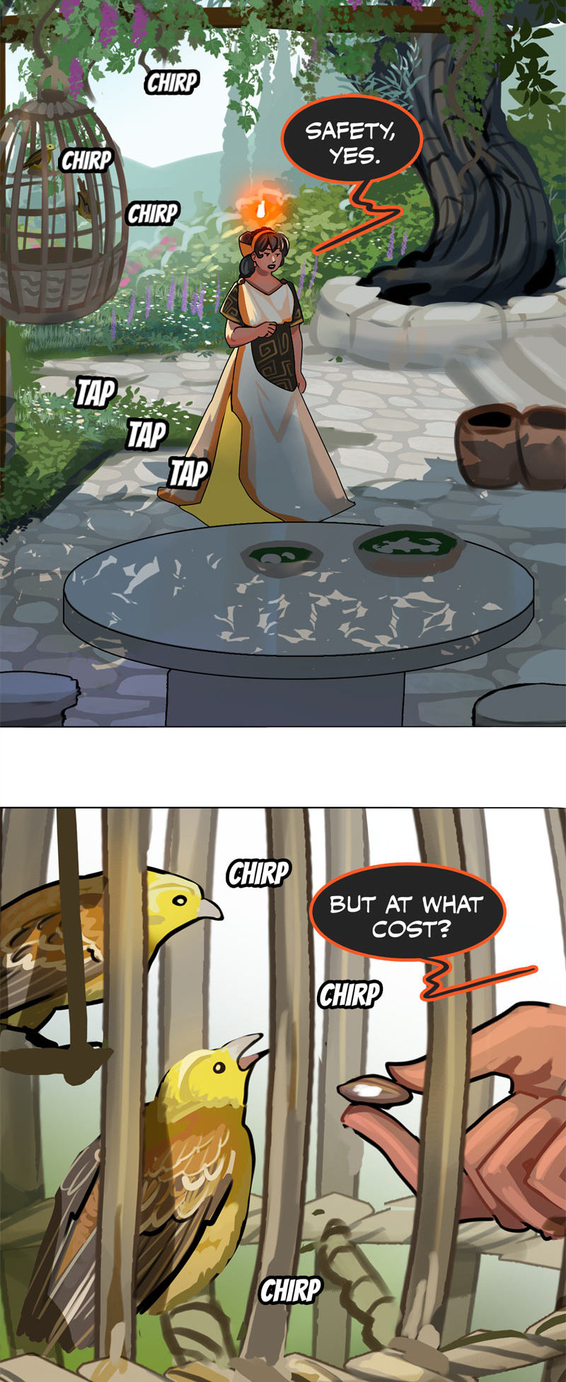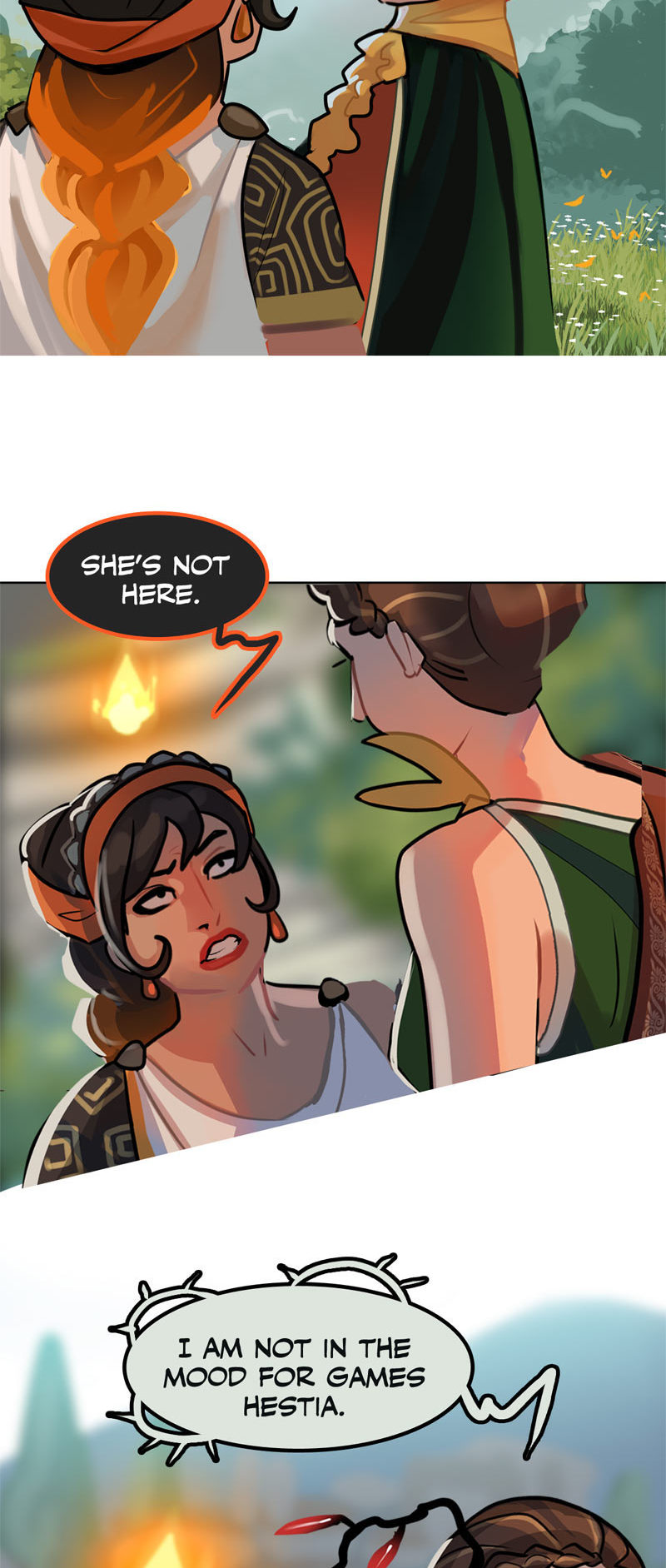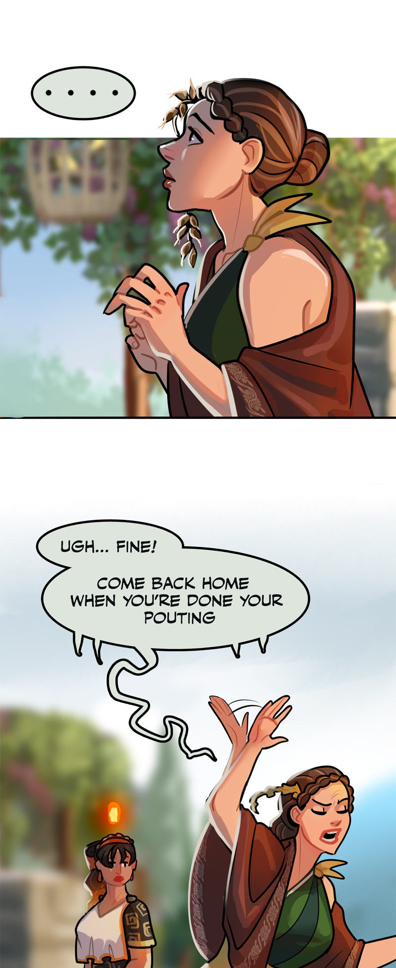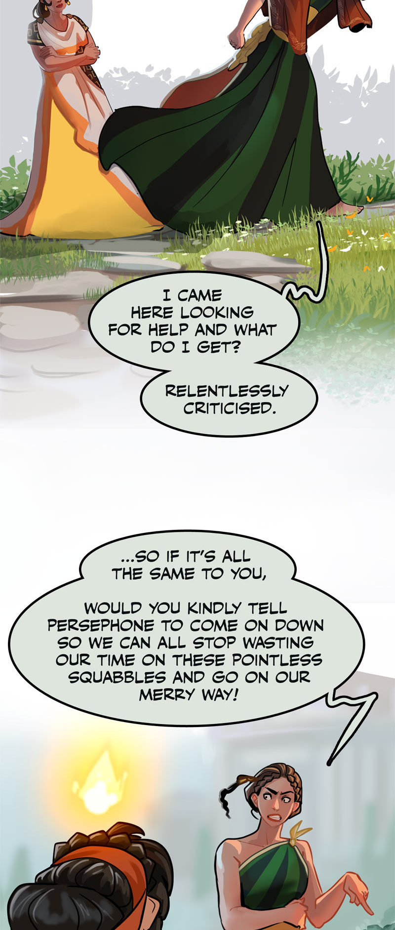 I repeat: I love Hestia here. Demeter may love Persephone, but she doesn't respect her. Stifling someone in the name of their "safety" is just as damaging as pushing someone into situations they aren't ready for yet in the name of "building maturity."