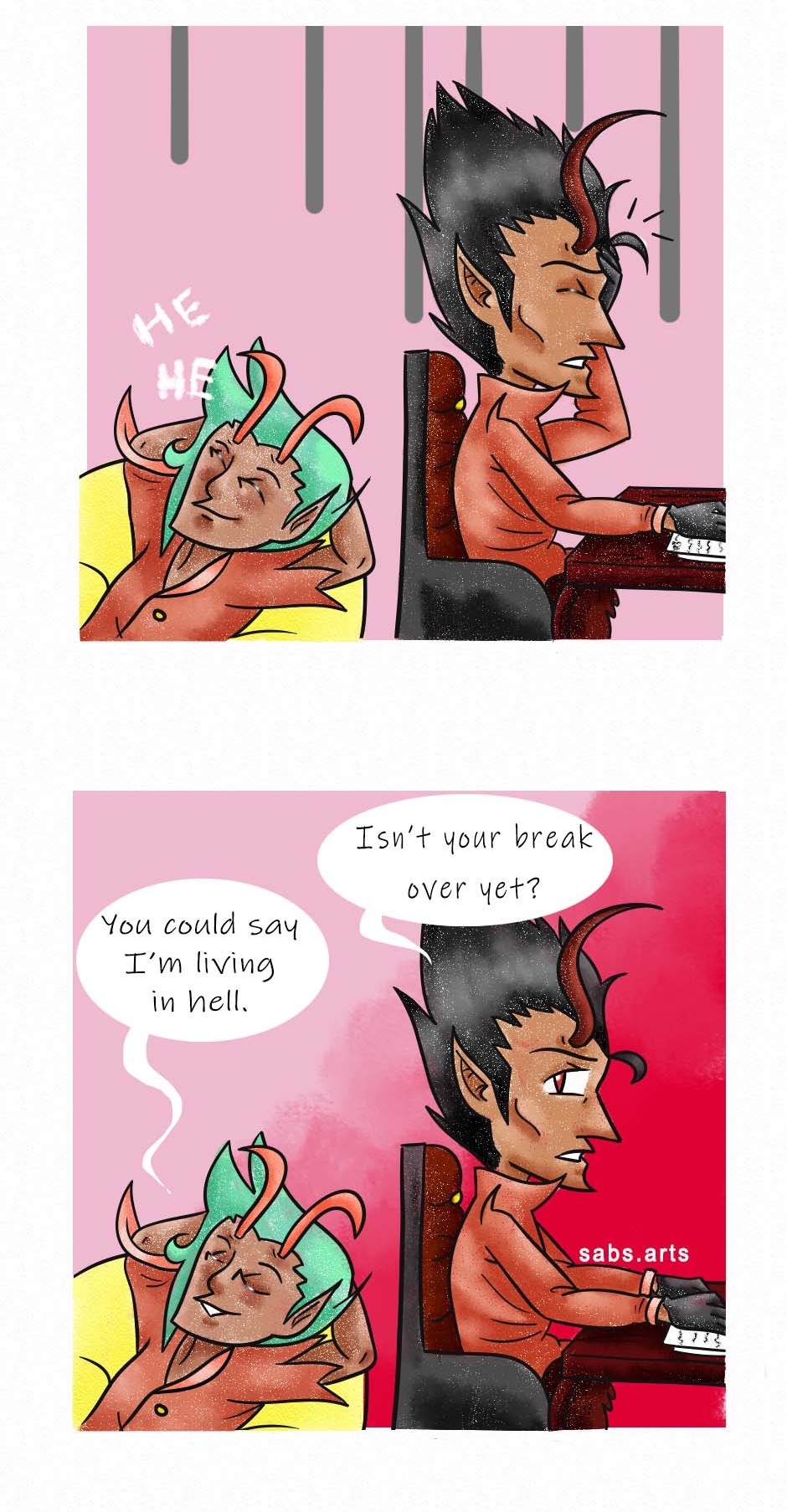It's a good idea to go to your boss room to have a break! Hehe