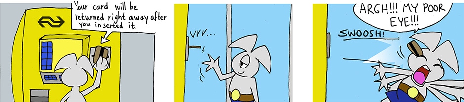 Anyway, this comic is still about the old card machines at the train station. Now they have different ones that do not send your card back immediately.