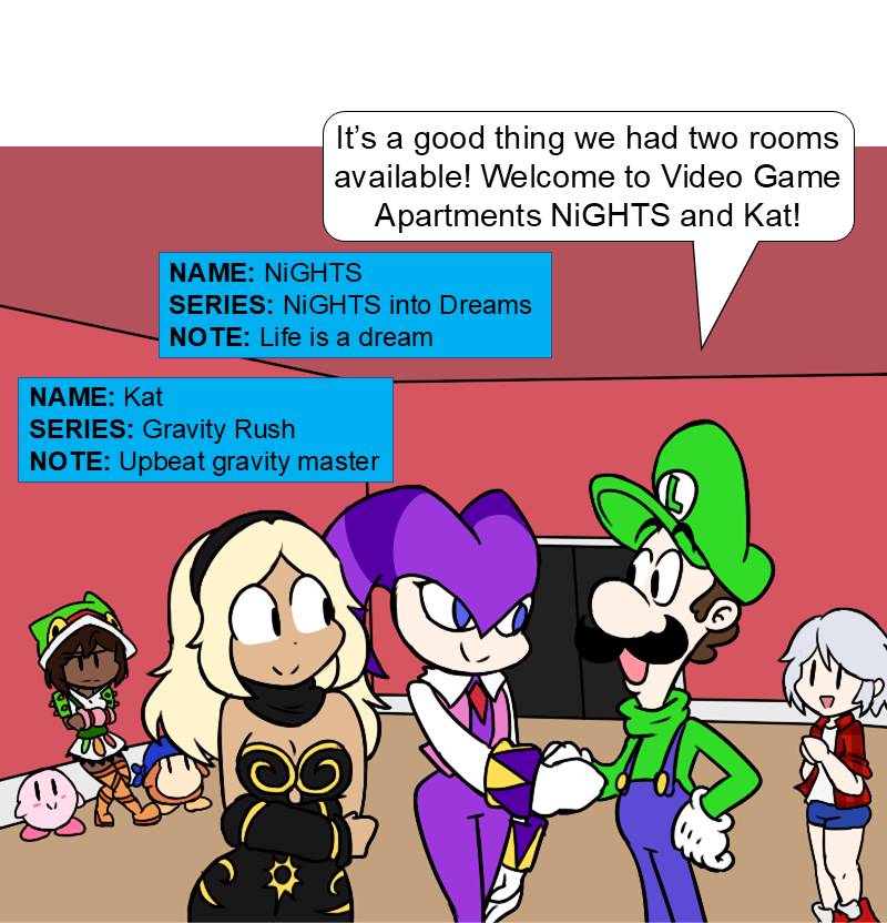 In this world video game characters are actors playing a role, but like any actor they need a place to live. Seeing this, Luigi opened a building for various characters to live in between making a new game. Join us as we watch the various antics and silly events that ensue from several video game characters living in the same building.