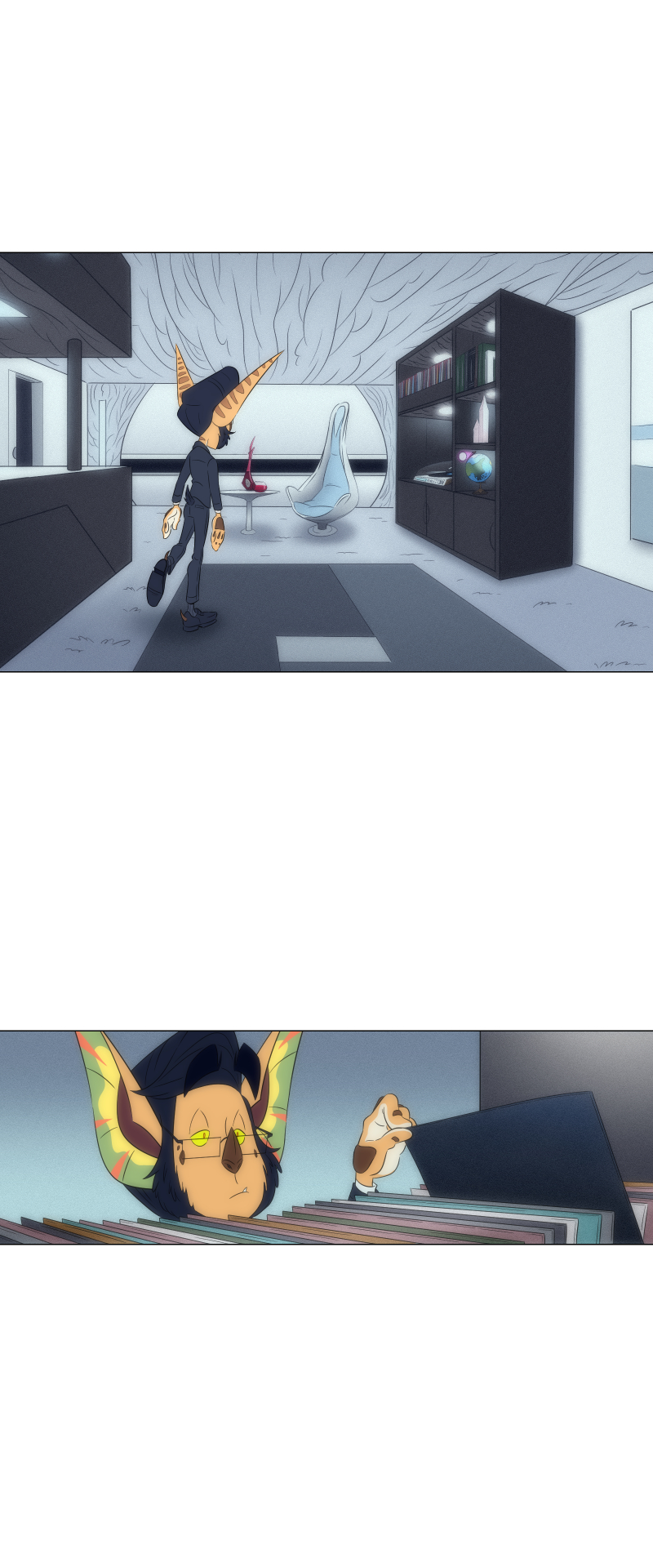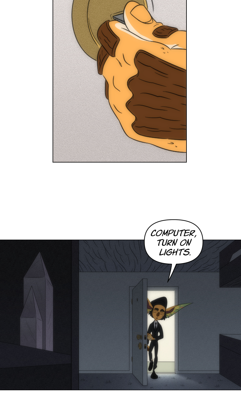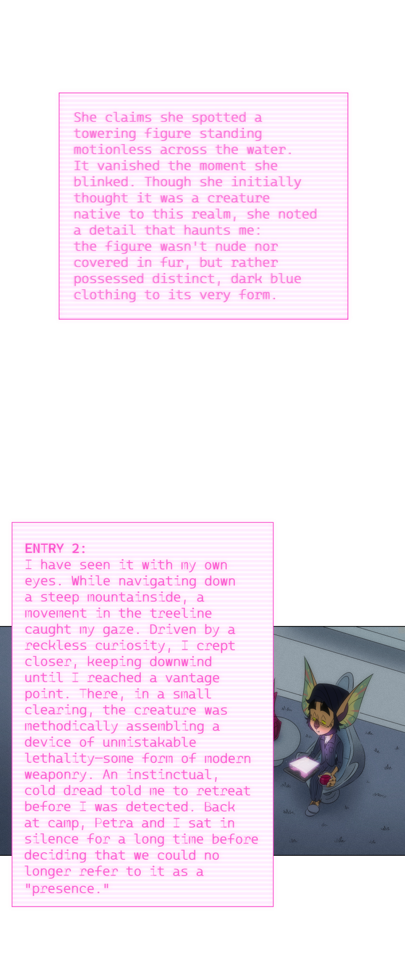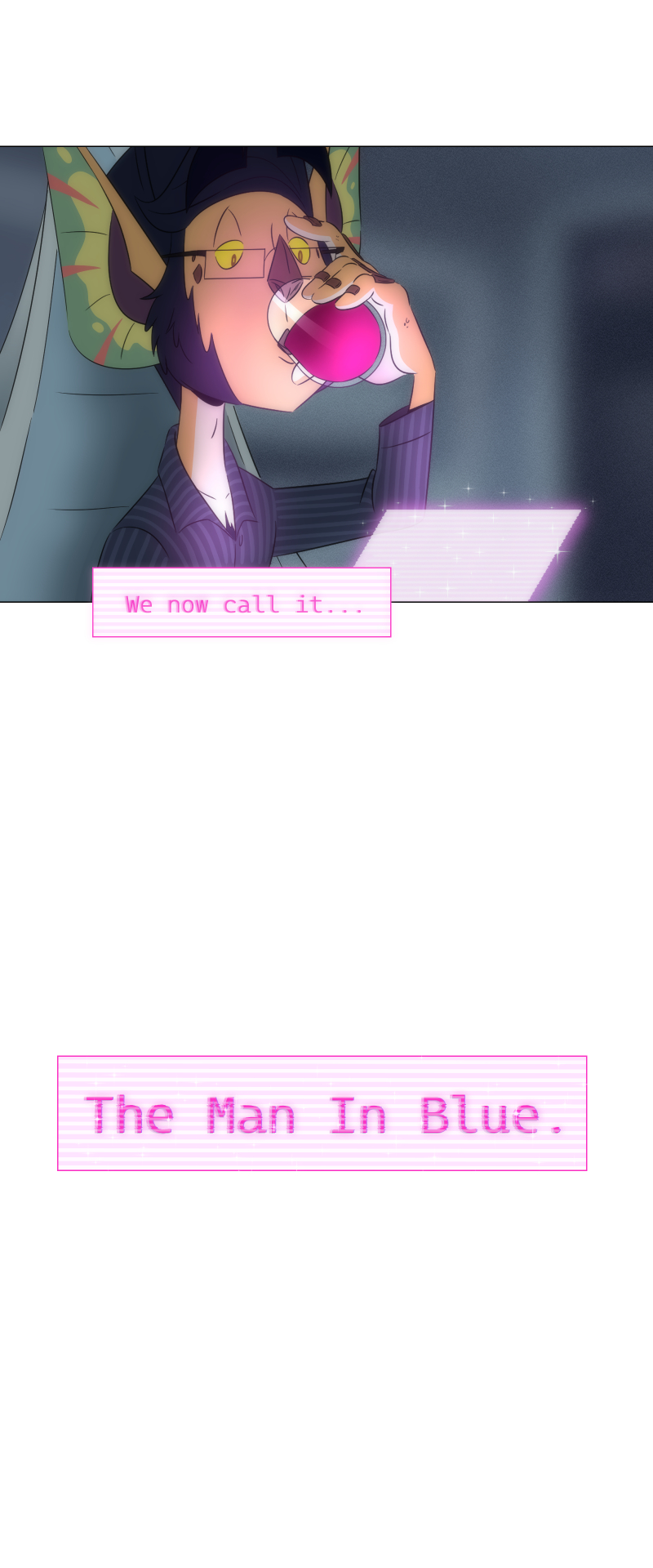 It makes me think back to the prologue now and realize that human contact is probably very rare or even at all if they couldn't even name what this 'man in blue' is. Really love the set up and it makes me think of the world and the possible grander scheme of things!
