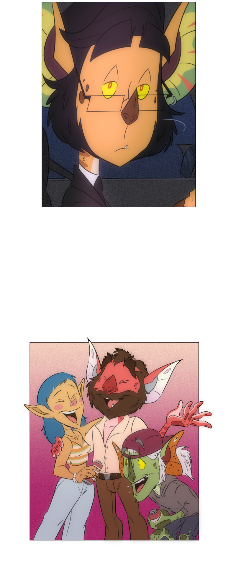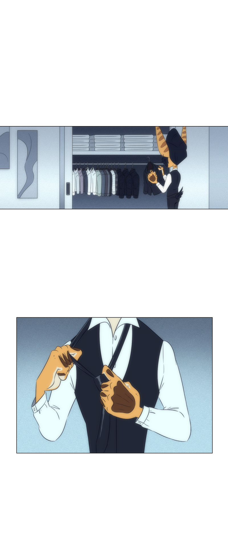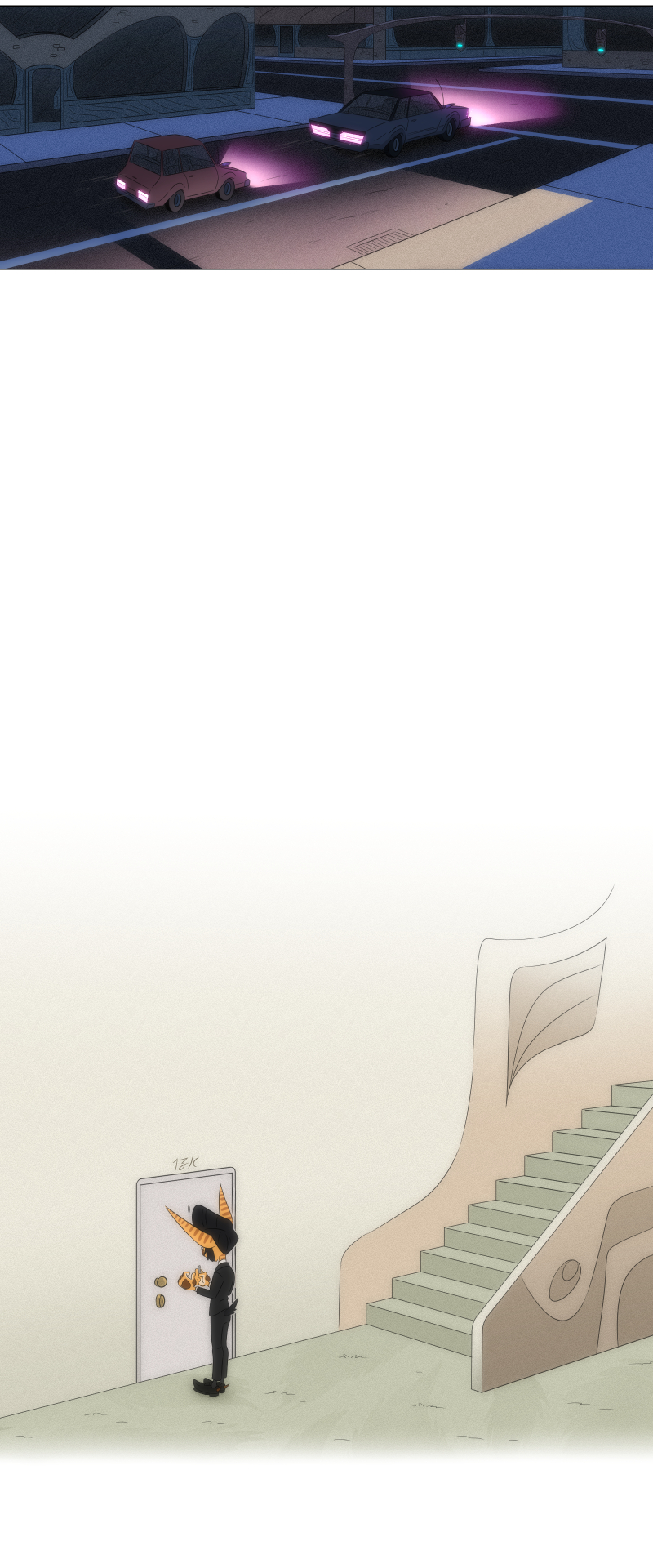 It makes me think back to the prologue now and realize that human contact is probably very rare or even at all if they couldn't even name what this 'man in blue' is. Really love the set up and it makes me think of the world and the possible grander scheme of things!
