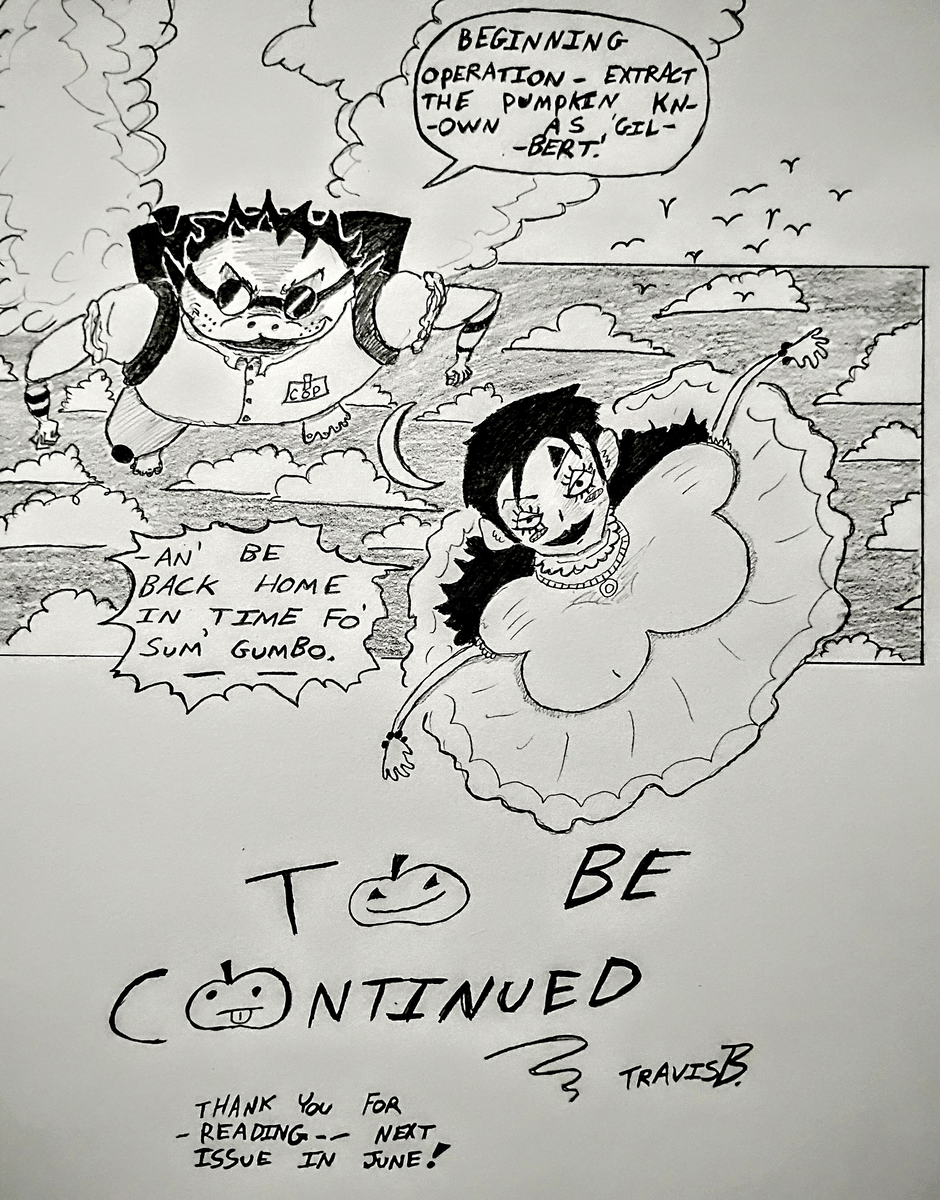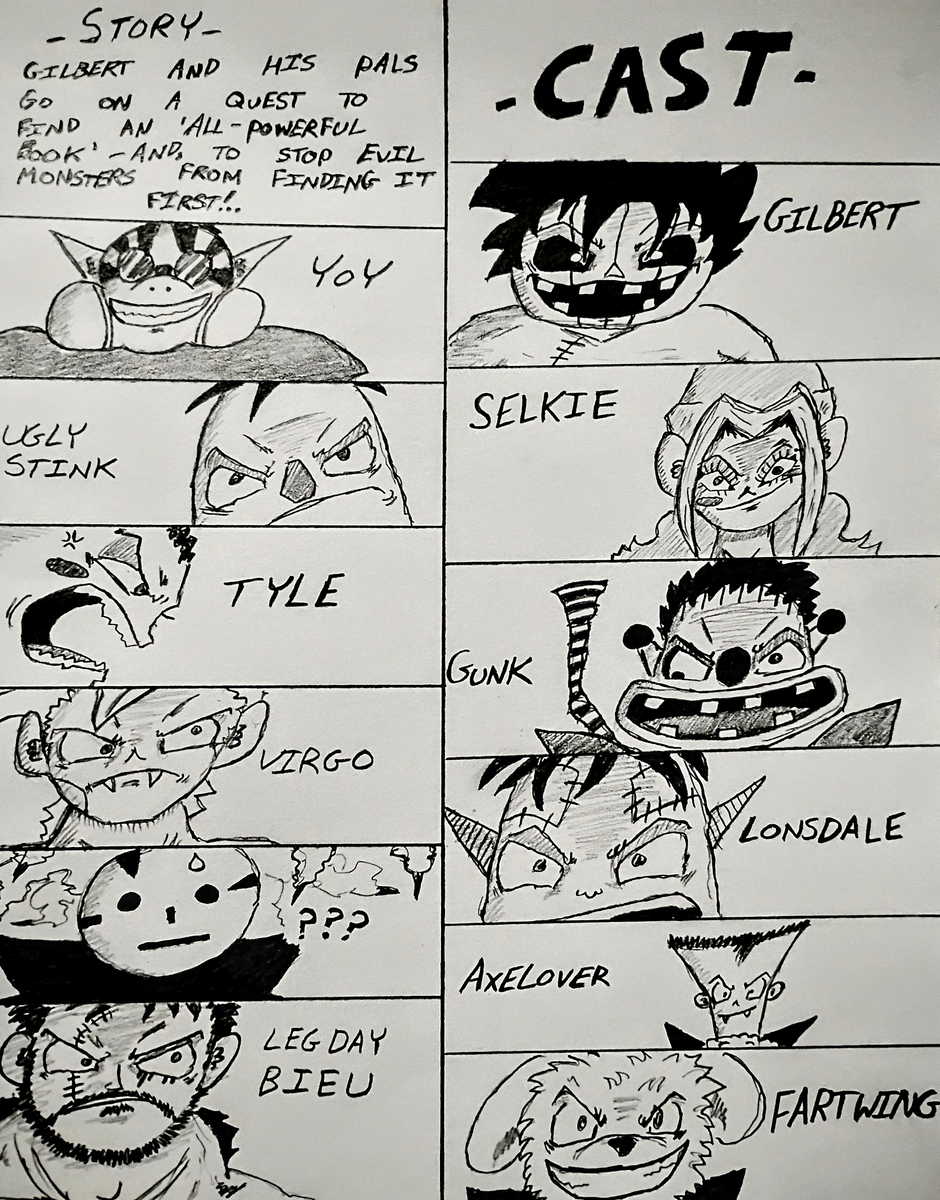 Join Gilbert, a pumpkin guy and Selkie, the birthday girl on their wacky journey of self discovery. Where will they go? What awaits them when they meet the gigantic zombie Captain Gunk? What's the deal with Gilbert's stick?? Why is it so powerful???