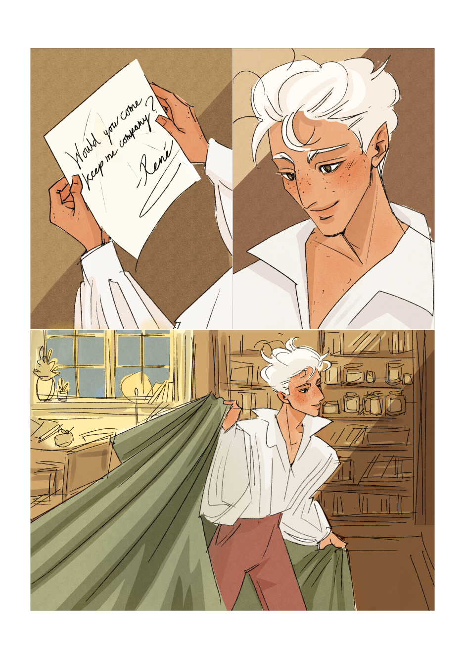 Prince René wakes up from a nightmare related to his past. What will he do when the royal mage comes to keep him company, but there are some unspoken feelings between them?