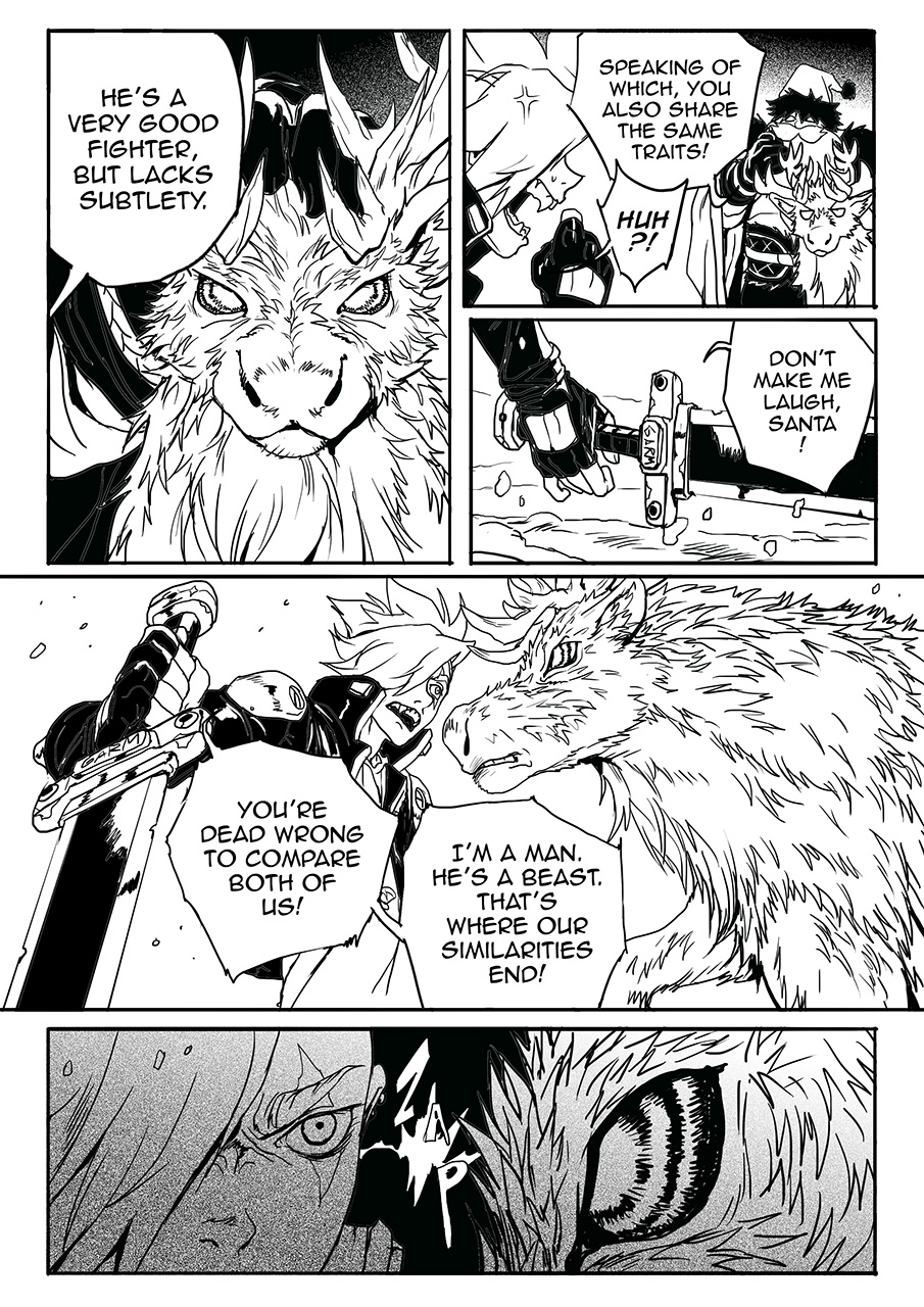 10 years ago, Scrooge Aingeal witnessed the death of his parents at the hands of the so-called Santa Claus. He vowed to take revenge on him ever since. To get Santa Claus to come for him, Scrooge has built his dark reputation by killing many criminals. The plan was successful with once again two of them facing each other. What Fate has in store for them will unfold right now!