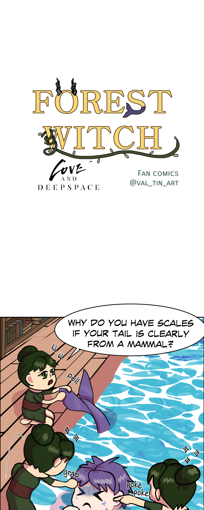 It's lore-inspired story with my two favorite boys: Sylus (dragon) and Rafayel (merman) meeting a powerful witch Lori (witch, OC) in a medieval fantasy setting.