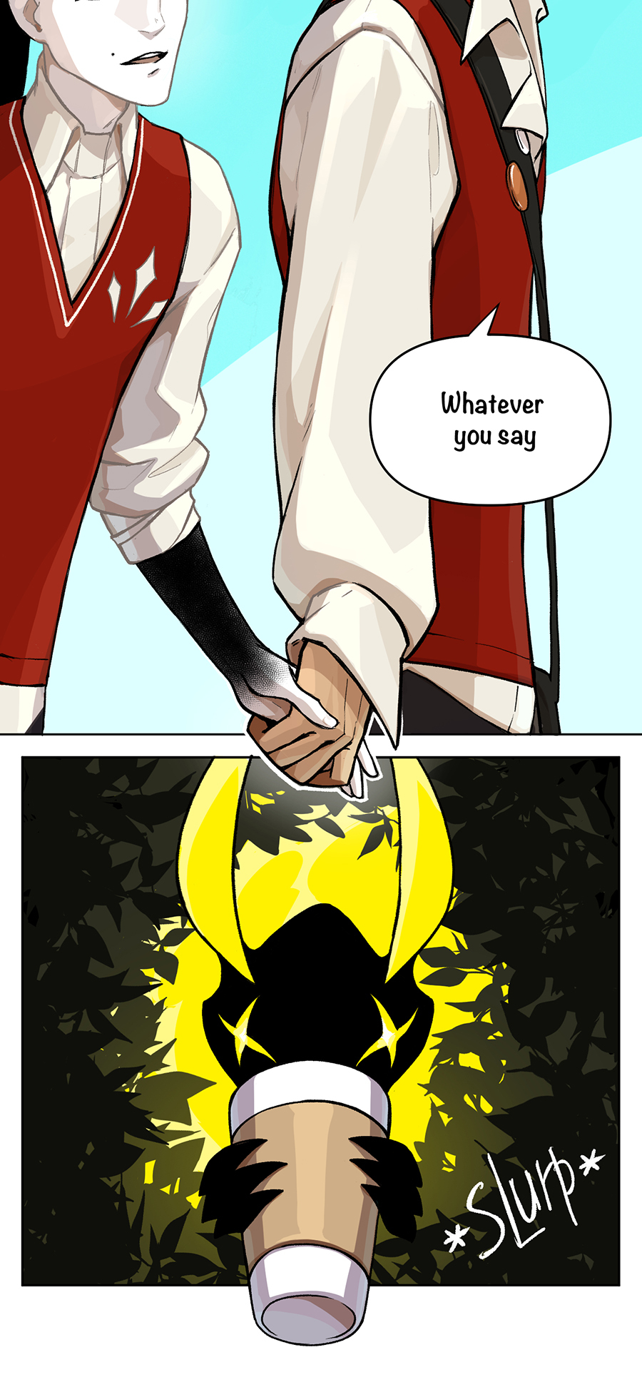 A story about an arranged dynastic engagement of an elf and a vampire, which has no plot and often does not make much sense, so be prepared for this sort of rubbish :) These short and long strips are full of queer and straight love, romance, unicorns and fairytale (lack of) logic in characters’ motivation and the story as a whole.