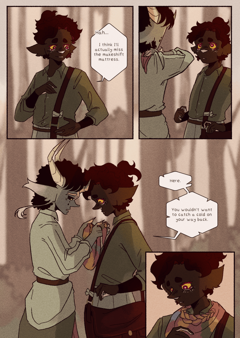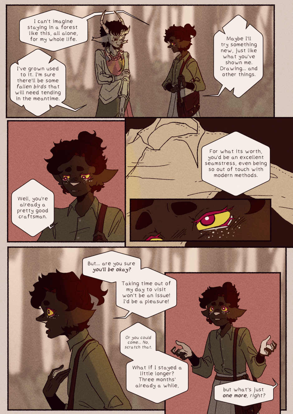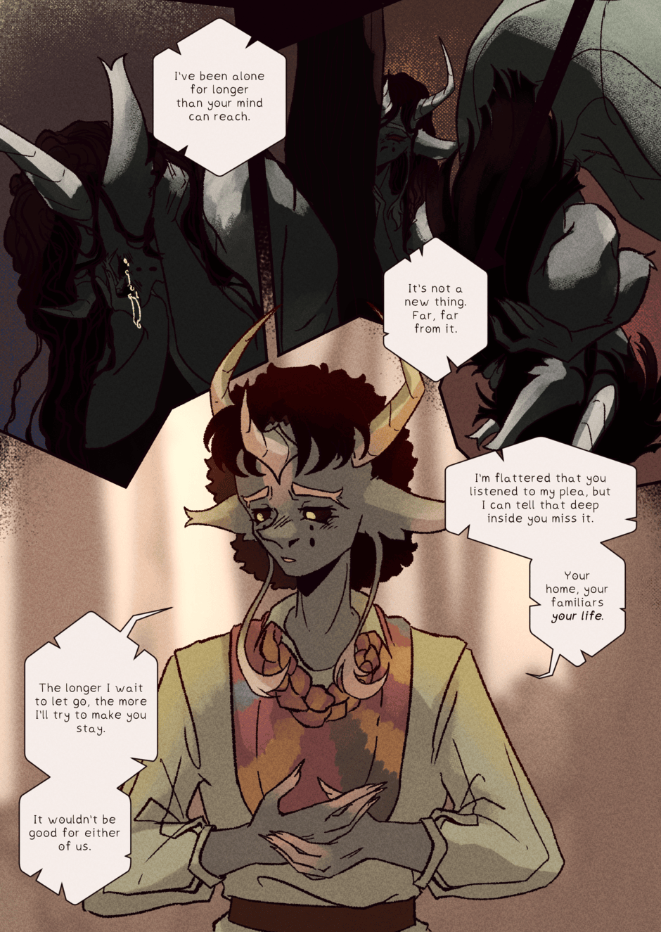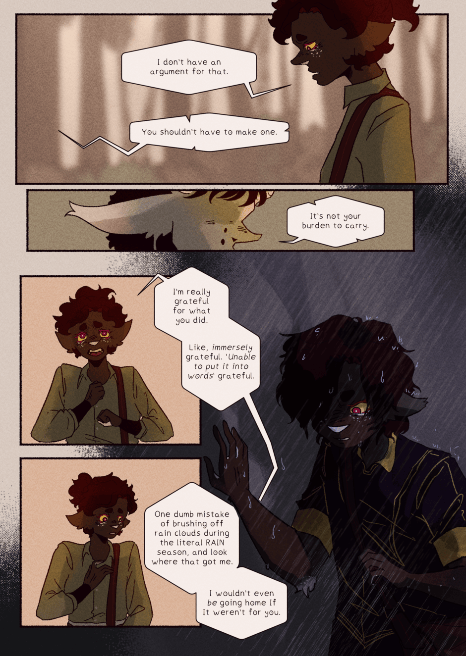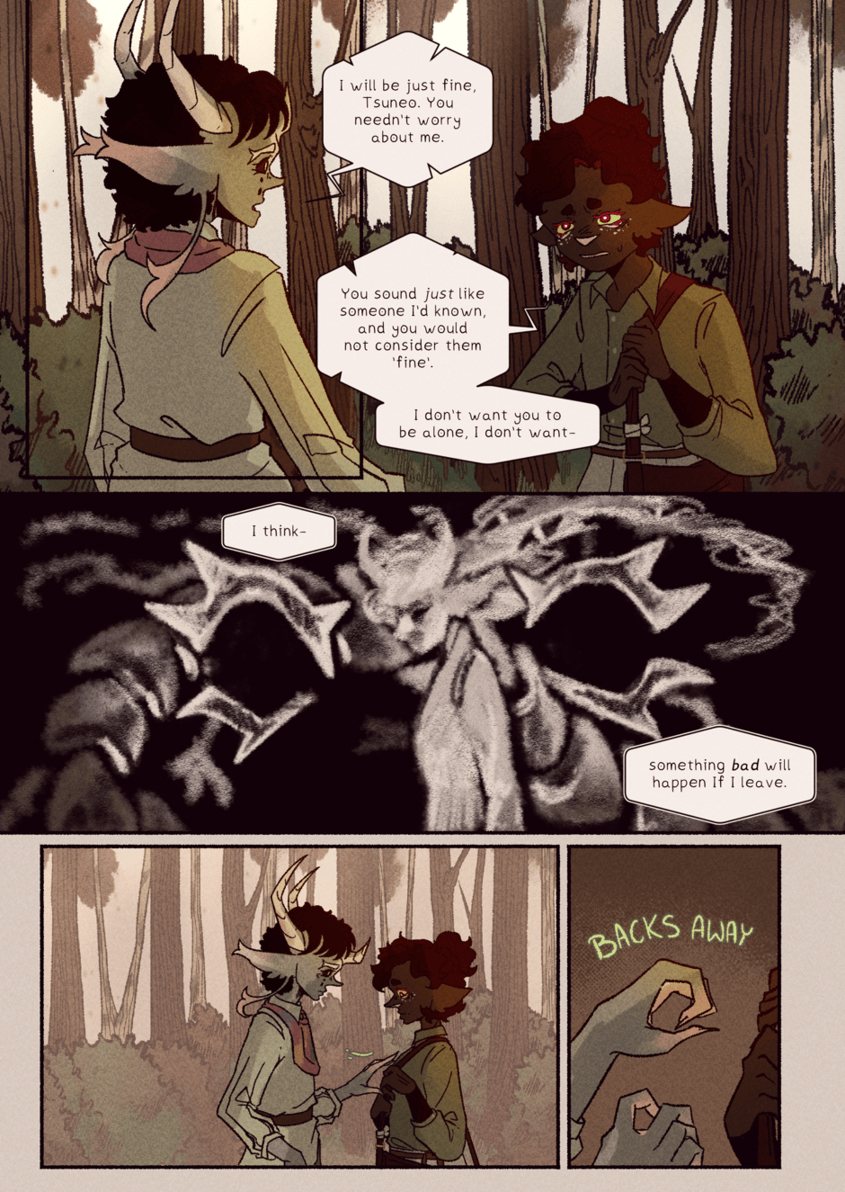 Late upload, but tapas didn't let me add the episode? The pages refused to upload straight up, but at least It's here! A big break in the story, because we're very near the end of the first volume. Theoretically at least, I never really planned out the story in a way that separates it into semi-even parts so It's a little tricky. In any case, thank you for reading! See you next time :)