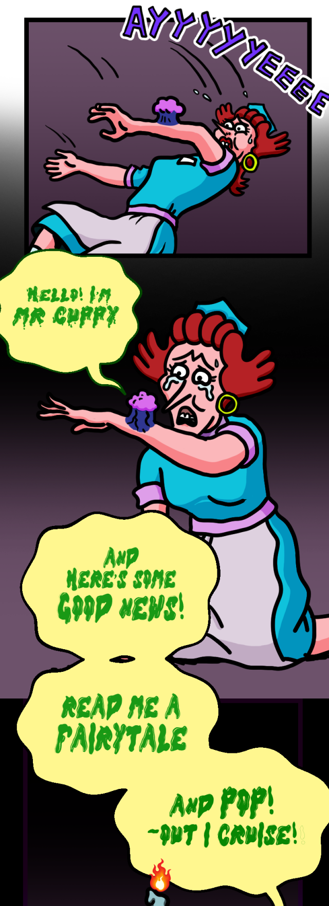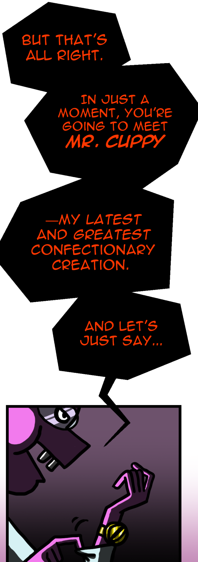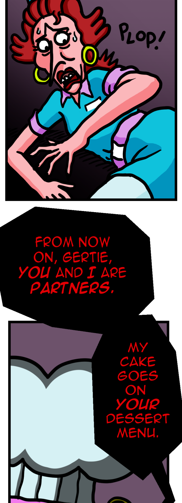 Three weeks earlier, diner owner Gertie is dragged into Binky Baker Boo’s sinister scheme—resist his demands, or play host to the grotesque cupcake creature known only as Mr. Cuppy.