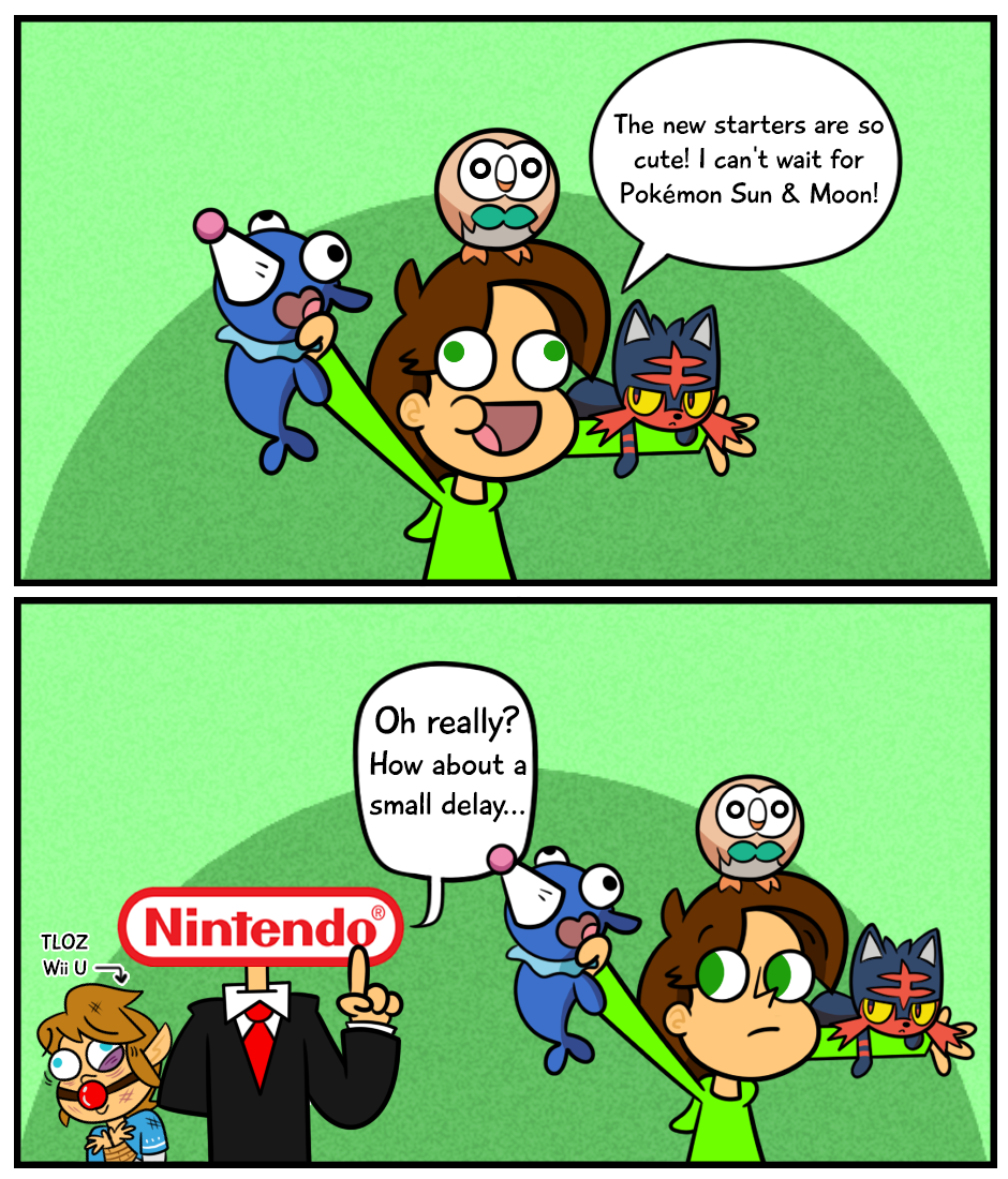 This episode sums up my relationship with Nintendo right now, I HATE THEM FOR DELAYING THE NEW ZELDA GAME UNTIL NEXT YEAR....but I love them because the new Pokémon game ¬¬
