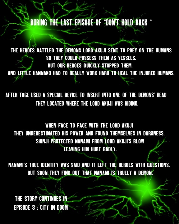 In a world (Earth realm) where demons threaten humanity, five heroes with unique powers must work together to save the day. Episode 1 begins by introducing each hero and their unique power. As they receive info on strange activity they all gather at the old clock tower preparing to spring into action.