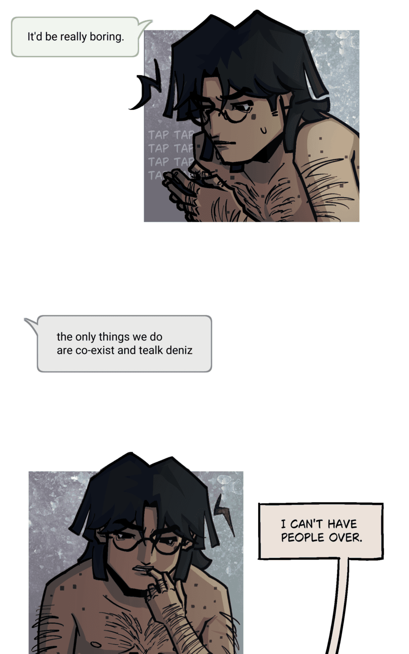 Ahh no Deniz enforce boundaries!! No, but he does need to communicate them. Either way, love the comic! How is this so underrated?!?