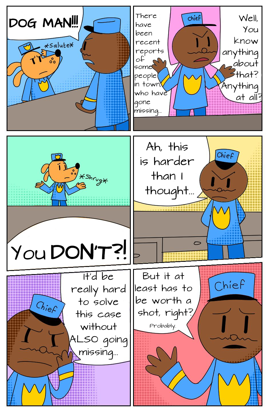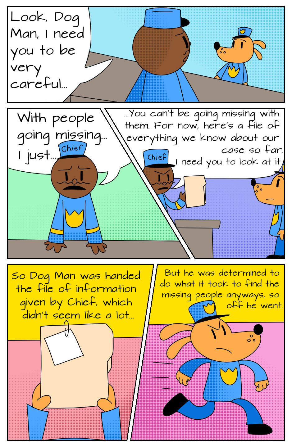 After Dog Man's duty case leads him and his friends to a nonsensical fantasy land, he finds that he is bound by the unbreakable Scarlet String of Fate, which leads him to Petey. Since he's already in enough trouble from walking into a stray dimension, he needs to work out just how to break that spell.