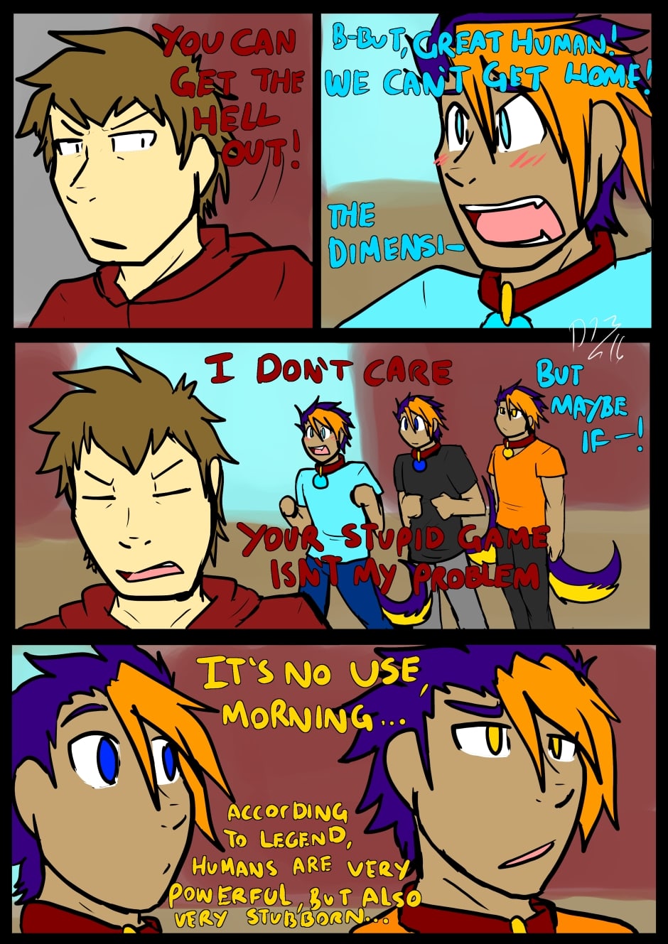 A Cerberus named Horizon is pulled into a dimensional rift and split into the form of three human triplets, Morning, Noon and Night. There they meet a Human called Denny who attempts to keep them out of trouble until they can find a way home. Though that's easier said than done...